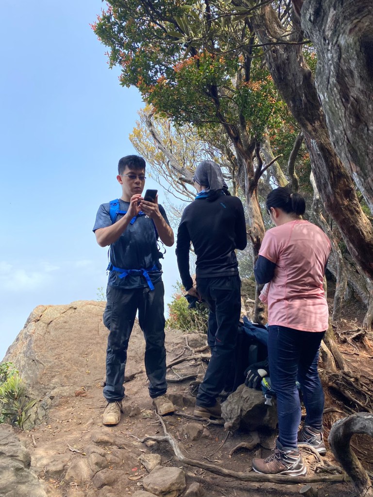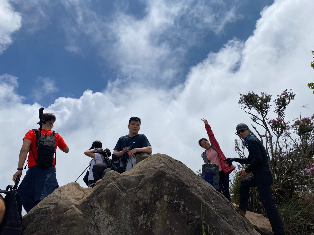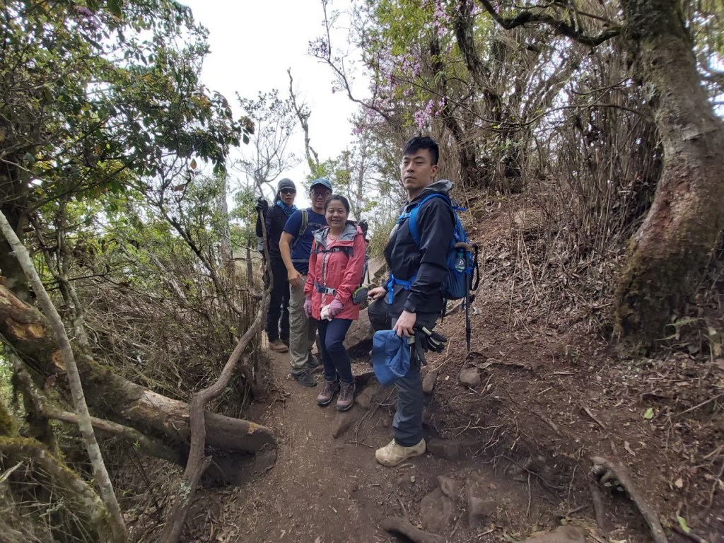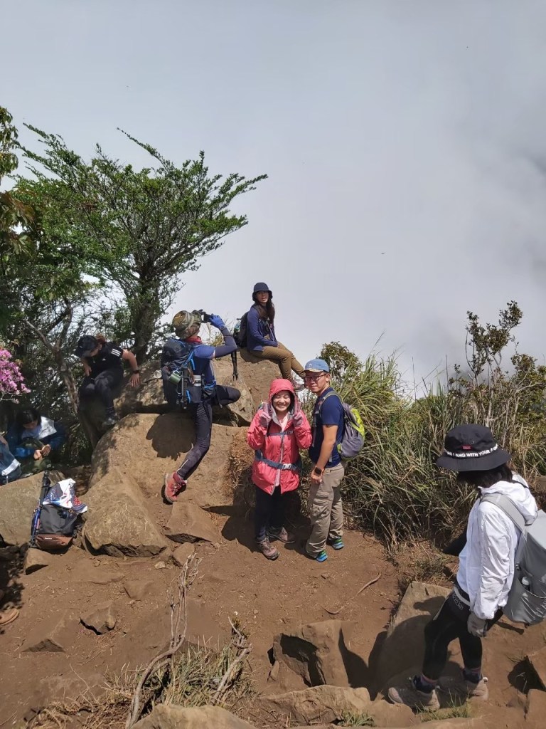 STH : 第一支突破8小時的山,林相豐富有看到獨特的二葉蘭,杜鵑嶺有個開口的景不錯,鐵道路線走起來也舒服,三角點幾乎360度的視野很棒,可惜白牆一片且人太多了,根本菜市場。回程時手錶沒電,但有紀錄的時間與距離的突破是對大家最佩服之處。