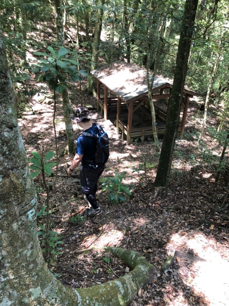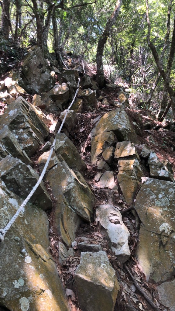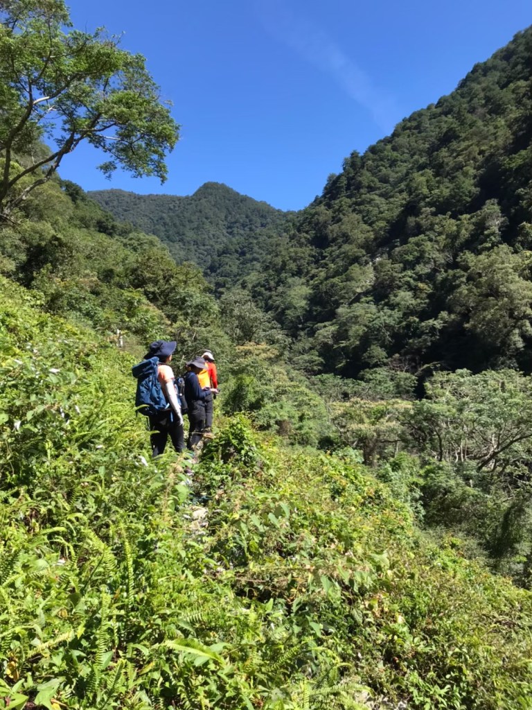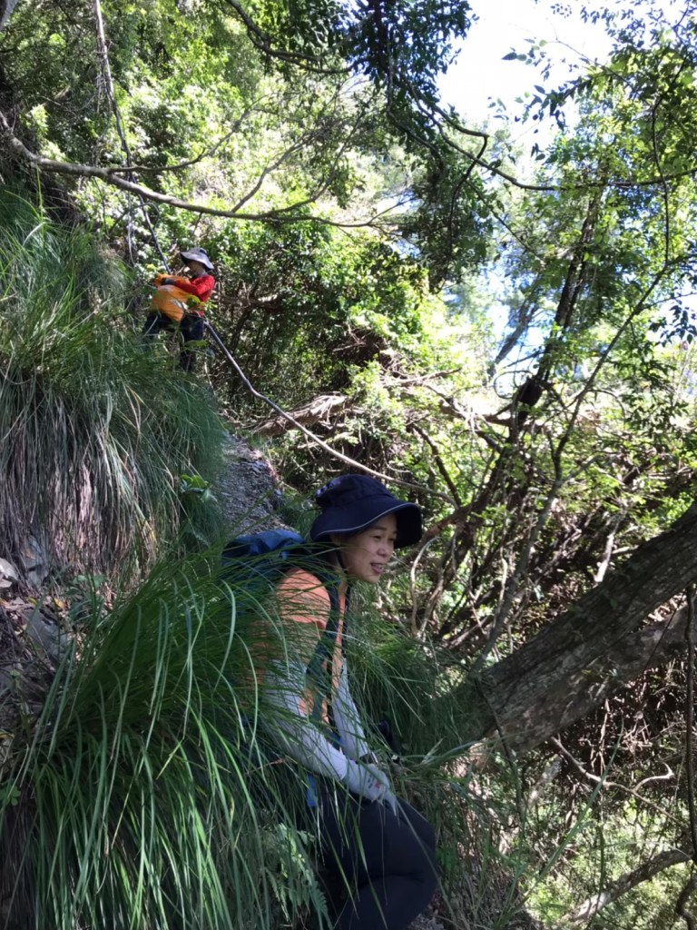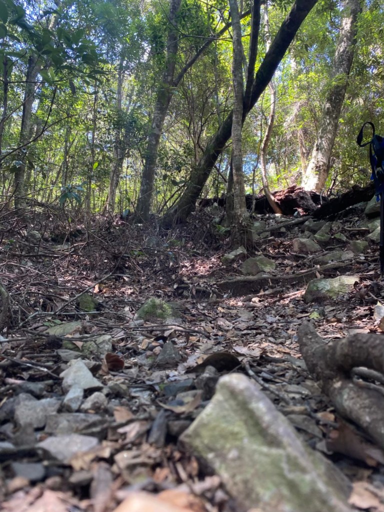 17:真的是「體能訓練場」一開始沒多久就攀爬,一路手腳併用,下山時還把膝蓋奉獻給十文字山了!好久沒走出戶外,真開心 🙂 三級期間雖然也有看YT運動,但真的跟之前差好多,覺得自己好弱 派代表登頂:大牛、STH;其他人+大牛的2瓶水在2K處等候 STH : 錯估三個月運動空窗期的影響,爬得很痛苦。地形多樣,有土坡地、階梯、落石、攀繩、水管等挑戰,有不少攀繩的路亂,且麗陽的上山路線不明顯,迷路了三次,花費不少時間。但是十文字溪很清澈,感覺適合野餐、放空,十文字山有一段山谷很漂亮,覺得看到該景就值得了。