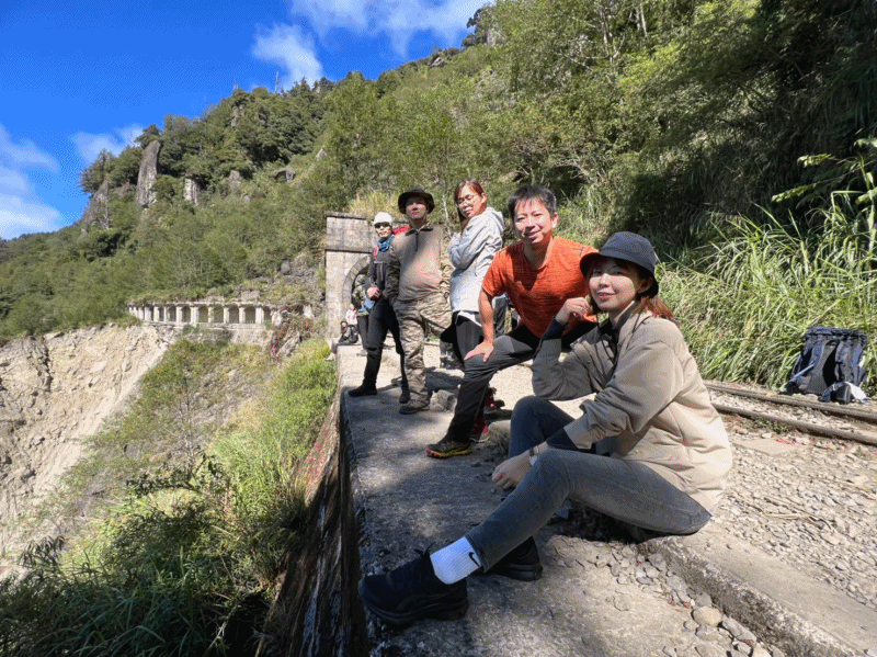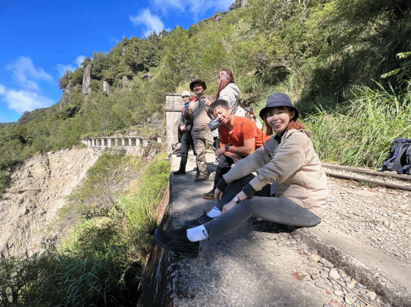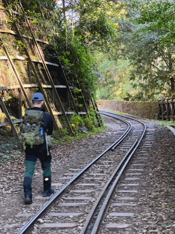STH : 因為有做壞事會被抓的好運氣,所以前段鐵路我自己一個人走塔山步道,遇到了不少猴子猴孫,其他人則是走鐵路,然後在鐵道往祝山與塔山的三叉口會合。因為想衝去看石猴,所以明隧道拍完合照就自己衝了。路途平坦,除了枕木較高的路段,有不少可以跑起來的平路,隧道、鐵路與橋的景色不錯,大自然沖刷的壯麗景觀也不少,保留區裡面有一個小腹地有著很香的檜木味,不小心在那裡吸了10多分鐘才又繼續趕路,以密度來說,保留區裡好拍的隧道與橋較少,網美團的話不用走進保留區也可以拍到很足夠的照片,但是要注意路標與投遞信箱,分界點是第12號橋,走過頭被抓就是3萬罰金。在石猴車站有問到在地人走訪石猴肩膀的路線,來回兩條都已掌握,上面景色不錯,展望大約130度,當天出大景,因為知道且走訪的人不多,自己在那享受了10分鐘才離開,可惜有點小危險,空間不大只適合兩三人而已。 PS1 因為石猴車站的地基被雨水沖刷導致傾斜,有遇到工人說,政府已經決議將車站圍起來,以後只能在石猴觀景台休息用餐。 PS2 水漾森林的樹也會被砍去一些。 17:臨時有事不行去,傷心又難過