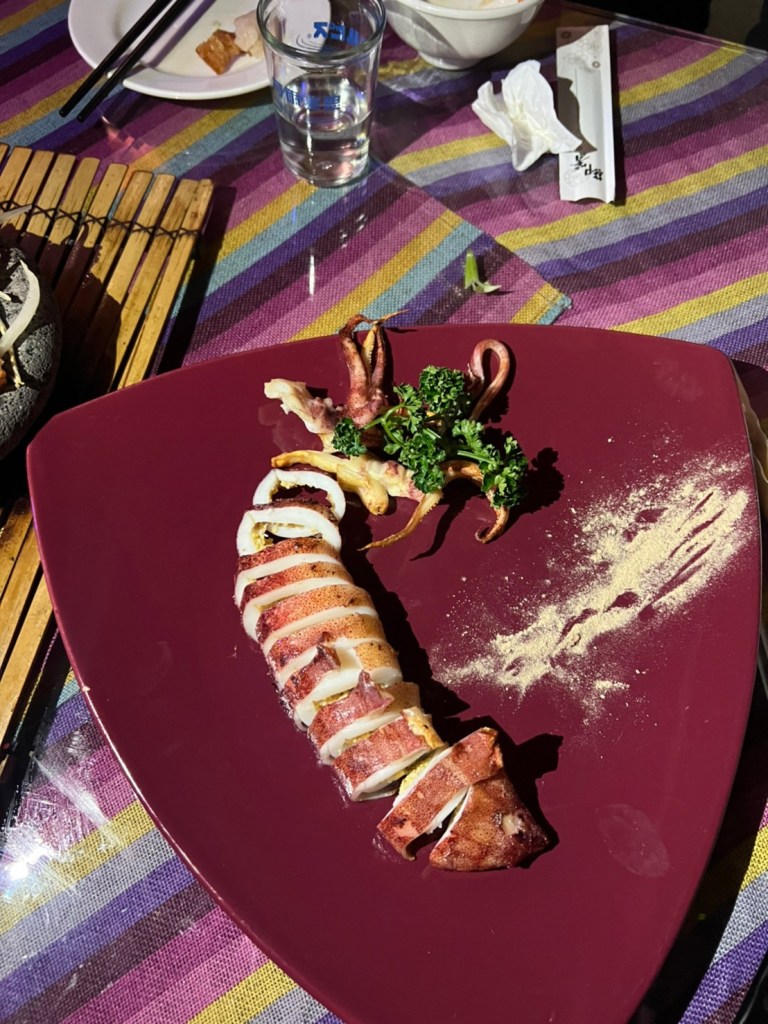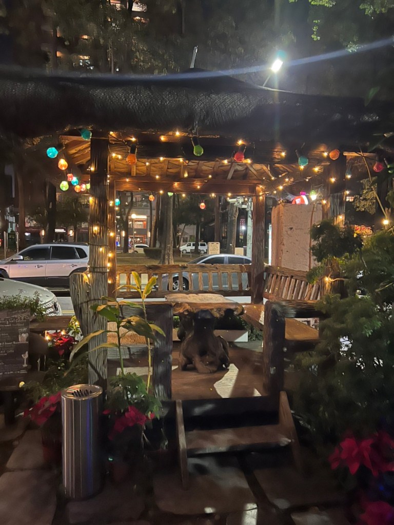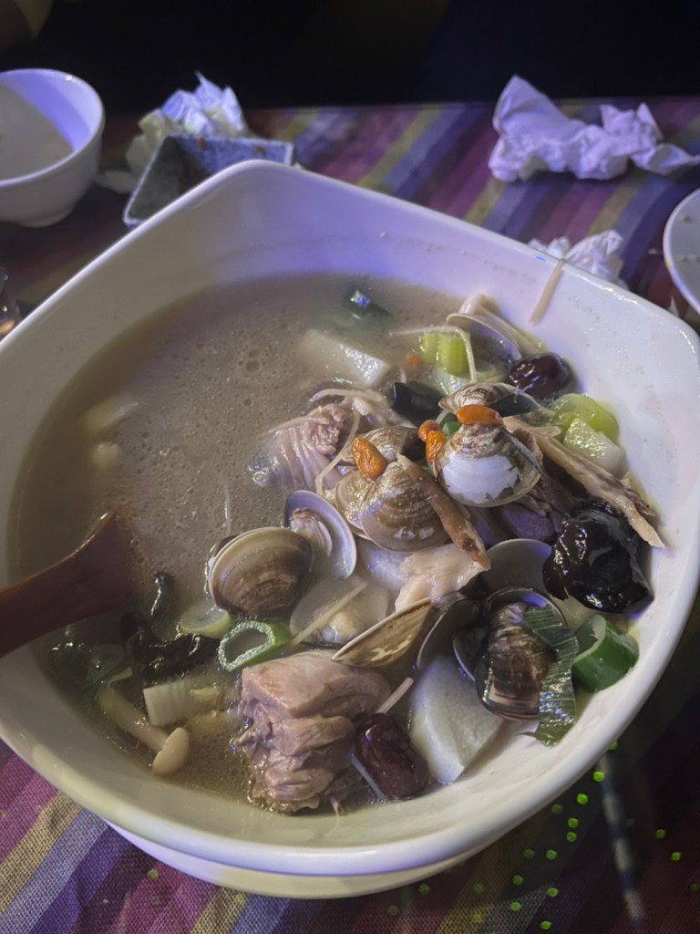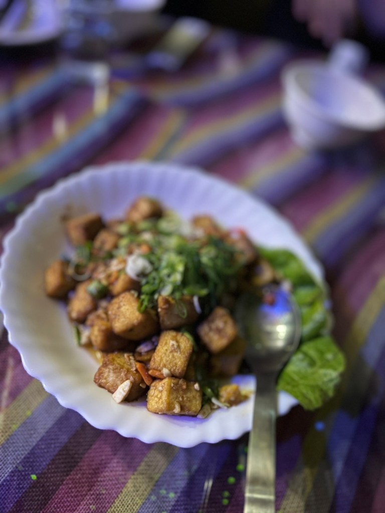 STH : 最有印樣的餐點是馬告香腸、炭烤山豬小腿肉、石板烤肉。馬告香腸超香的,在嘴裡散發的香味很馬告。石板烤肉很香,味道不錯,可惜外層酥皮太硬了,且肉質偏財柴很可惜,我的最愛是山豬小腿肉,調味適中不會無味也不會蓋過豬肉既有的味道,軟嫩適中口感很好,缺點是太少了。黃金豆腐其實也很好吃,但沒有配飯的話味道太重了,所以沒有入選前三。現場駐唱歌手的聲音不錯,流浪者這首歌聽到起雞皮疙瘩的動人,動感的歌曲也很能炒熱氣份,是個適合三五好友週五晚上吃飯離天的好去處。續攤的咖啡店也很有特色,老闆還教我不同泡法咖啡因的濃度差異,是個可以放鬆的空間。