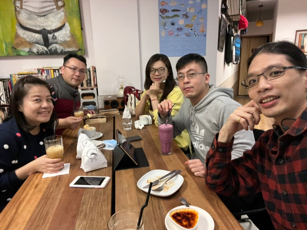 17:低消每人800元,原本找網路資料是500元,瞬間有想往外走的衝動,哈哈~但整體吃下來覺得還可以,上菜速度也不會很慢,但是有些菜色售~沒得點,而且忘了先訂一隻雞,哈哈XD 黃金豆腐好好吃~但要配飯,單吃有點太鹹了。碳烤山豬小腿肉好吃,可惜骨頭上都沒有肉了,不然啃起來應該還不錯。 照例吃完~續攤一下,臨時開google map找附近還有營業的店,找到了:仁將Caffeterry,有一隻柴犬店狗(好可愛,但都叫不來)。雖然去的時候有點晚了,但還是有2、3桌的客人,而且很像是常客,老闆也很好聊~除了現場喝果汁外,還帶了肉桂捲、咖啡粉回家,這晚花了我不少$$$$$
