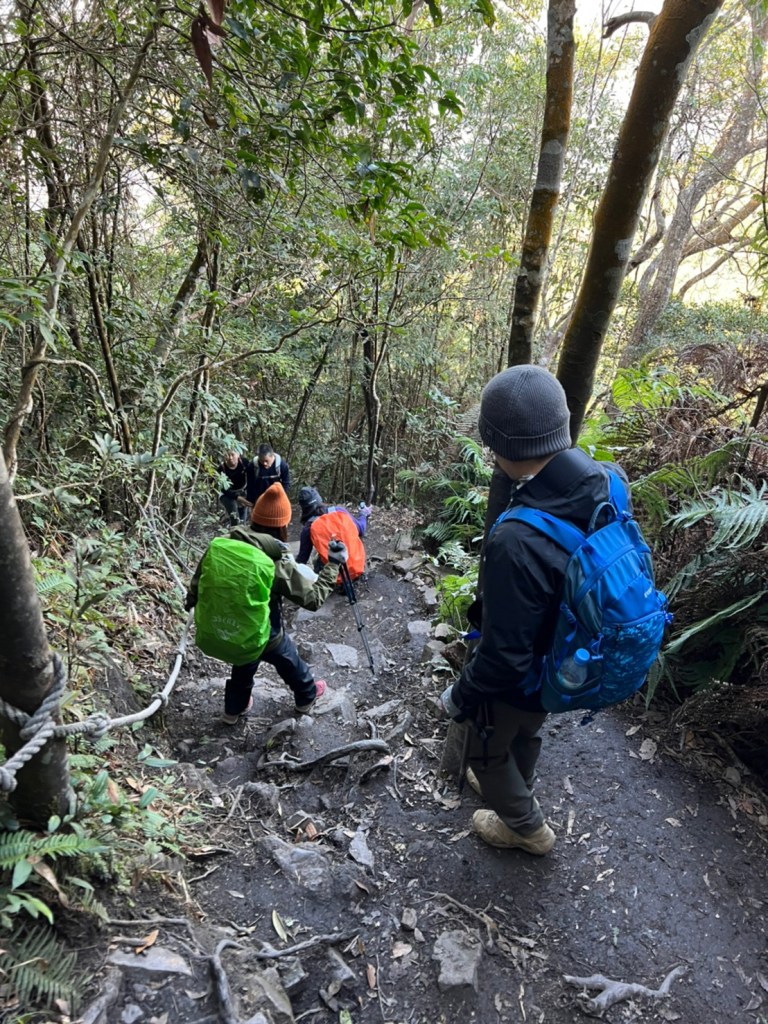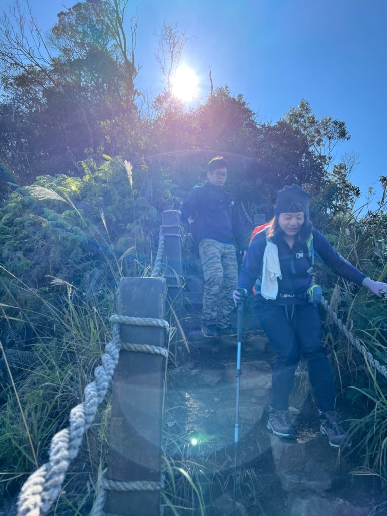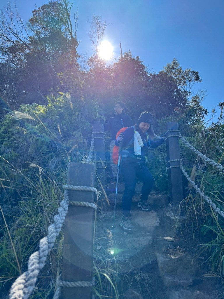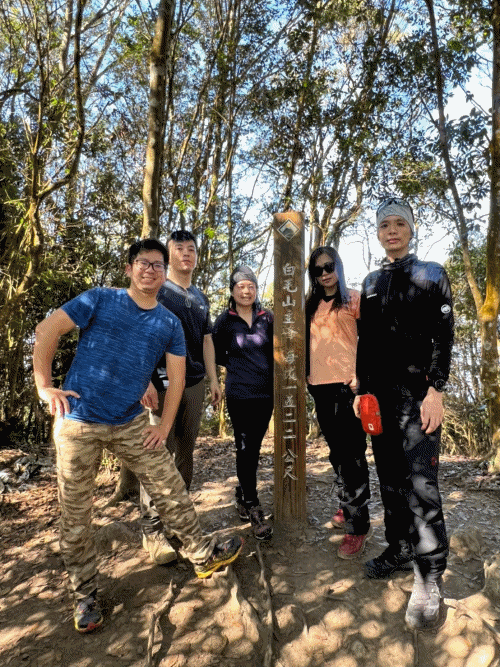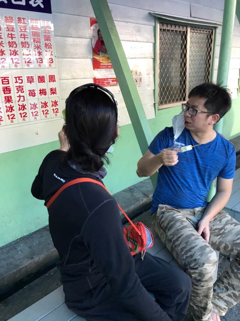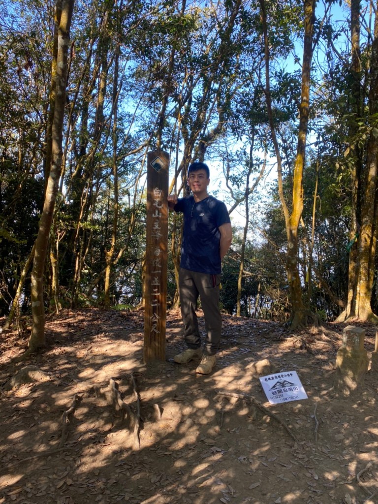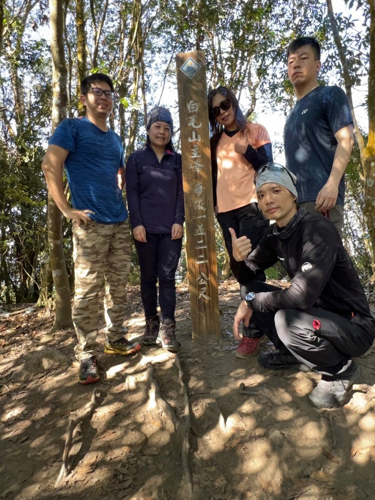 STH : 前段前往登山口的產業道路又臭又長又陡。走的很久爬得很累,大多數的山都是大家到登山口拍照後開始爬,白毛山是到登山口後大家喝水休息再出發。整體來說,白毛山是陡上->平緩->陡上的路況,第一段陡上接續在產業道路之後的體能消耗,真心覺得難度增高了不少,但後段平緩路線走起來相對輕鬆很多,且路段幾乎都在林蔭之中,如果裝備有穿好,基本上走起來很涼爽舒服。有段小開口可以看到來谷關的道路與大甲溪,yt影片也有人在此看雲海,可惜現在種滿小白花,可見之前的登山客很愛這裡的景,一邊如廁一邊賞景,但就算周遭的景再美,垃圾的本質還是垃圾,不會變網美。白毛山的景觀多是遠眺尖尖的東卯山,從山腰的近景到山頂的遠景各有不同的風味,不過廣受山友最愛的還是三角點前的天梯,有一對排在我身後的情侶檔還跑到我前面幫彼此拍照,完全把我當空氣,身為空景派的我無奈。 17:為什麼這座山...比我想像的還要難爬?一直陡上上上上,我的膝蓋、我的腳真是辛苦你們了 (。ŏ_ŏ) 但好像是目前速度比較快的一次?終於有吃到白冷冰棒+白冷肉包!:) 冰棒種類太多,有選擇障礙,最後選了最保險的牛奶口味$12。白冷肉包的肉肉沒有肥內部份,料也是算合口味的,原本想多買回家給阿爸吃,但~~~~~~要等下一鍋了,只好作罷