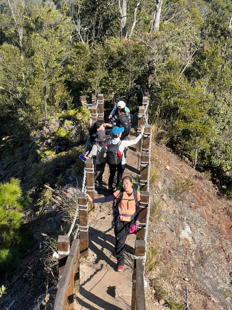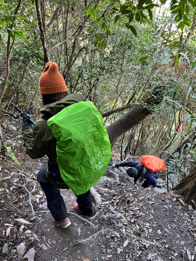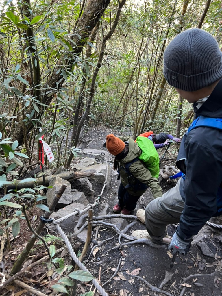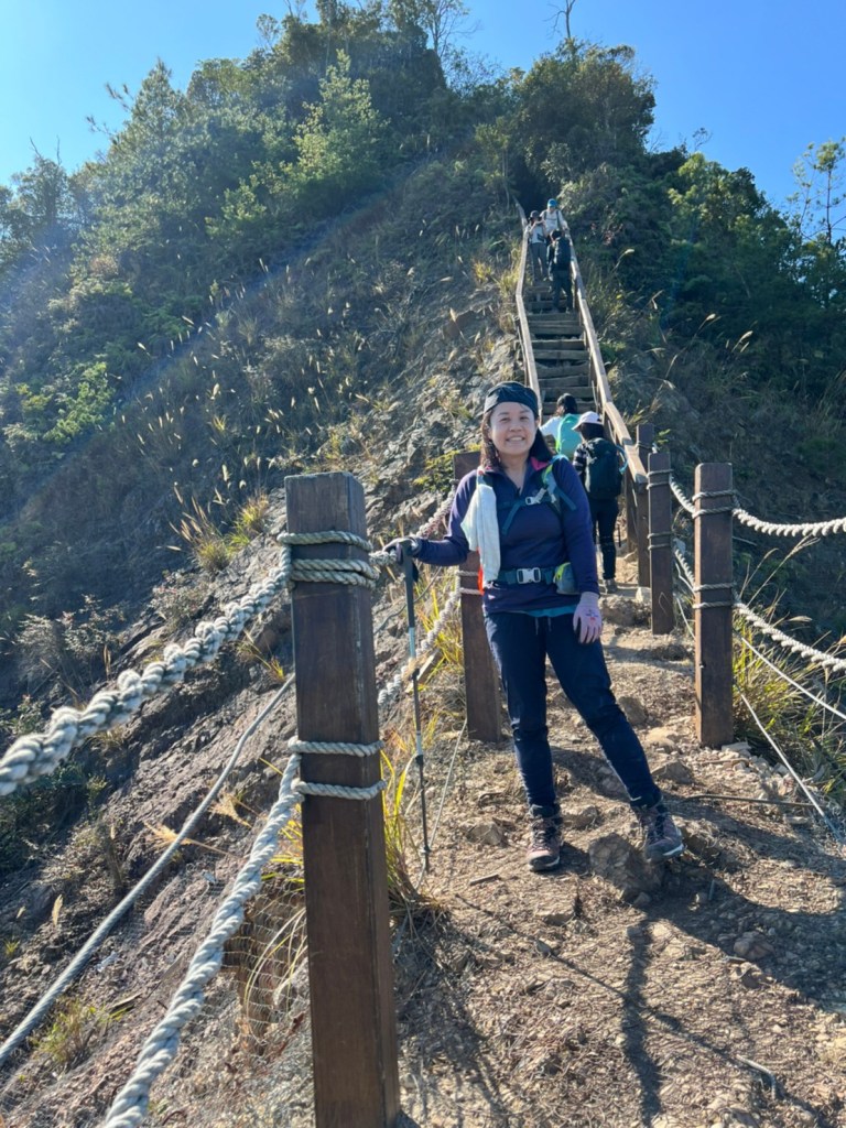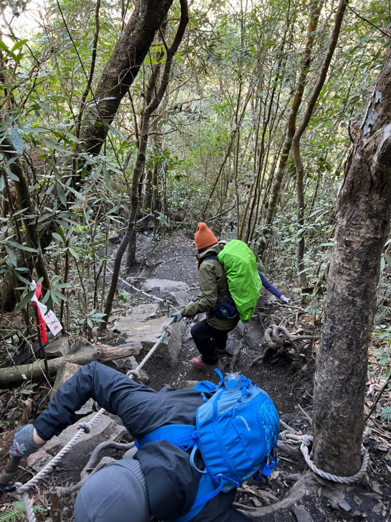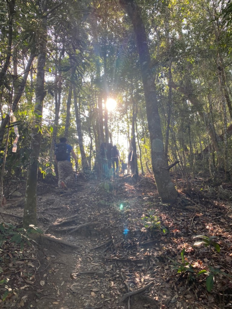 STH : 前段前往登山口的產業道路又臭又長又陡。走的很久爬得很累,大多數的山都是大家到登山口拍照後開始爬,白毛山是到登山口後大家喝水休息再出發。整體來說,白毛山是陡上->平緩->陡上的路況,第一段陡上接續在產業道路之後的體能消耗,真心覺得難度增高了不少,但後段平緩路線走起來相對輕鬆很多,且路段幾乎都在林蔭之中,如果裝備有穿好,基本上走起來很涼爽舒服。有段小開口可以看到來谷關的道路與大甲溪,yt影片也有人在此看雲海,可惜現在種滿小白花,可見之前的登山客很愛這裡的景,一邊如廁一邊賞景,但就算周遭的景再美,垃圾的本質還是垃圾,不會變網美。白毛山的景觀多是遠眺尖尖的東卯山,從山腰的近景到山頂的遠景各有不同的風味,不過廣受山友最愛的還是三角點前的天梯,有一對排在我身後的情侶檔還跑到我前面幫彼此拍照,完全把我當空氣,身為空景派的我無奈。 17:為什麼這座山...比我想像的還要難爬?一直陡上上上上,我的膝蓋、我的腳真是辛苦你們了 (。ŏ_ŏ) 但好像是目前速度比較快的一次?終於有吃到白冷冰棒+白冷肉包!:) 冰棒種類太多,有選擇障礙,最後選了最保險的牛奶口味$12。白冷肉包的肉肉沒有肥內部份,料也是算合口味的,原本想多買回家給阿爸吃,但~~~~~~要等下一鍋了,只好作罷