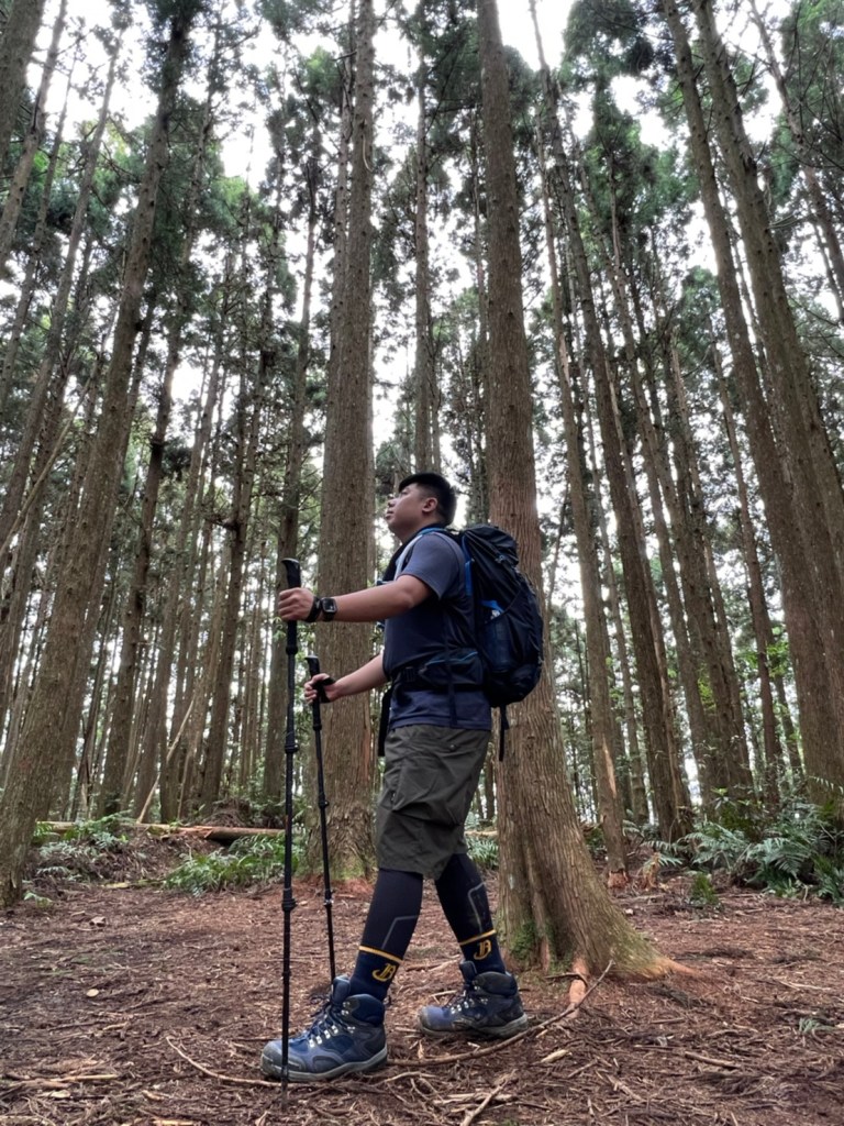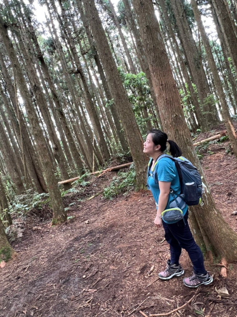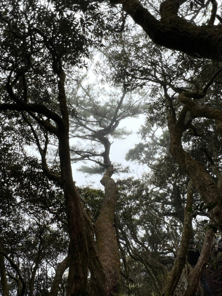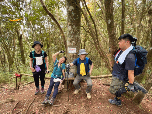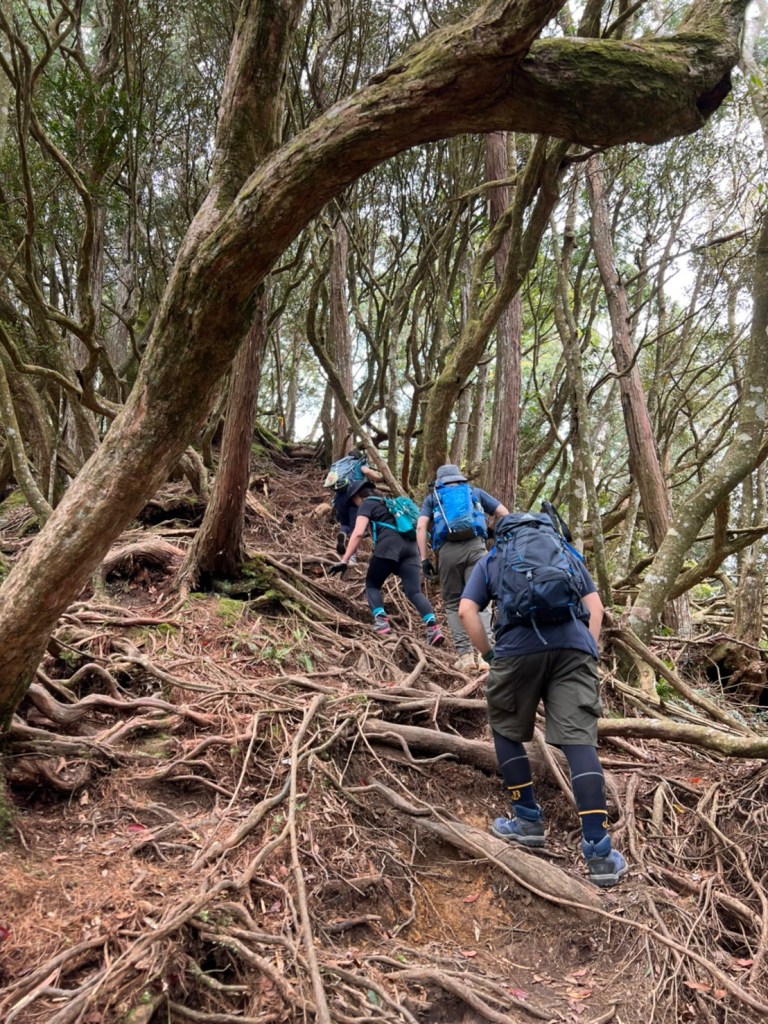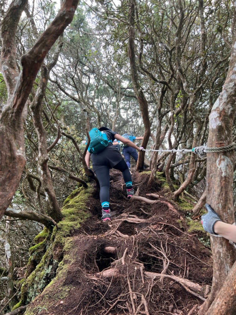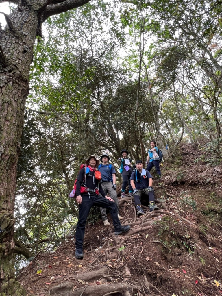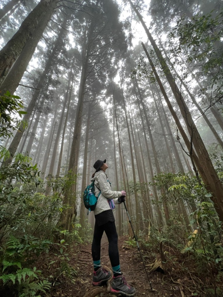 STH : 非常大眾化的路線,光看停靠的車輛,絕對破兩百人。前段前往高台山的陡上路線是個很不錯的熱身,但是因為人超多,跟著前方的人走走停停有點累,到了姑婆芋林的時候也沒有好的角度可以拍照,一直陡上直到林項改變進入柳杉人造林,路線開始好走,也能感受到心靈的放鬆,可惜今天沒有陽光可以拍攝光影,加上帳篷與人很多,為了移除雜物,適合拍照的地點不多。到達高台觀景台時也是人數眾多,大家排隊拍照,有個大叔還告訴我們,山上的白花是台灣種的杜鵑。沿途的樹木的姿態非常的多樣化,遇到了三顆很美麗的樹木,每顆都有自己的特色,但是需要仔細觀察,有的美景沒回頭是看不到的。我們走左上右下的P型路線,前往小島田的路線不算困難,但是明顯的,地面開始比較溼滑難走,前往中島田的路線很多攀爬路段,有的攀爬路線偏原始、有的布滿鬆軟的松針,每段攀爬都有著自己的特色,途中跟著前人走還迷路走到路線外側的植披,沒有拉繩、沒有樹枝可以拉,且越靠近大島田,路面就越濕,可能出發前幾天的雨勢引響,大家的鞋子褲管都髒髒的泥巴,路上也很難找到平坦地可以休息放飯。在大島田吃午餐是我們第一次使用地布野餐,看來大家都算蠻滿意的。回程的路段高低起伏但是屬於平坦,不會太難走。可能因為氣候使然,過午雲霧較重也較濕,氣溫也很明顯地降低,好險沒穿夏天的裝備,要不然真的會出事,但是雲霧繚繞的柳杉林很美,很值得。台灣不大,承佑遇到兩個認識的,而我們也在回到高台露營區時遇到約妹子的牛哥,只能說牛哥懂約。 17:從去年就一直看這條路線,終於成行了~感謝各位大大!CP值很高的一條路線,一次撿四座山,還讓你練手臂!確定成行時,這次有比較認真在找路線+看網路影片,對於一開始的陡上+近90度攀爬已有做好心理準備,但~陡上真的好累,而且還有一堆人在前在後,雖然自己的速度也不快,但也覺得前面人的速度忽快忽慢~想超車也卡卡。然後近90度的攀爬,怎麼會有趴2趴3…啊影片跟文章怎麼都沒說,害我一直覺得只有一段! 走了好久好久~~才到大島田山,有適合的空地放飯,今天勞煩S大大幫背午餐,但也不要像垃圾一樣掛在背包外面咩~這次準備了三顆自製飯糰+章魚小熱狗+芭樂,還有還有冰冰涼涼的「阿薩姆奶茶」<唯一缺點就是會想上廁所!> 當天天候狀況不是太好,去程就遇到開始起霧了,下山時更是走在山嵐之中,每個人都是仙女仙子,能見度超差~~且一心以為自己有帶頭灯,結果回家後隔了2、3天打開登山小箱箱才發現~欸!它躺在裡邊休息~還好在行走時尚可不用,不然就gg了! 下山的路雖然平緩許多,BUT一下爛泥巴、一下樹幹橫倒路中間,走起來也是無法加快速度~而且腳打滑溜滑梯了,還好有登山杖撐著,不然不知溜去哪了! 回程在露營區看到熟悉的背影,原來啊牛牛真的跑來這兒露營了,他們扛了好多罐啤酒上來,是想??