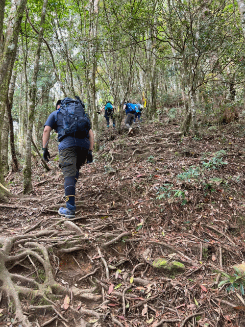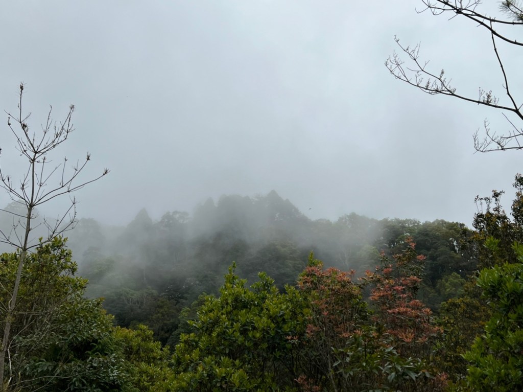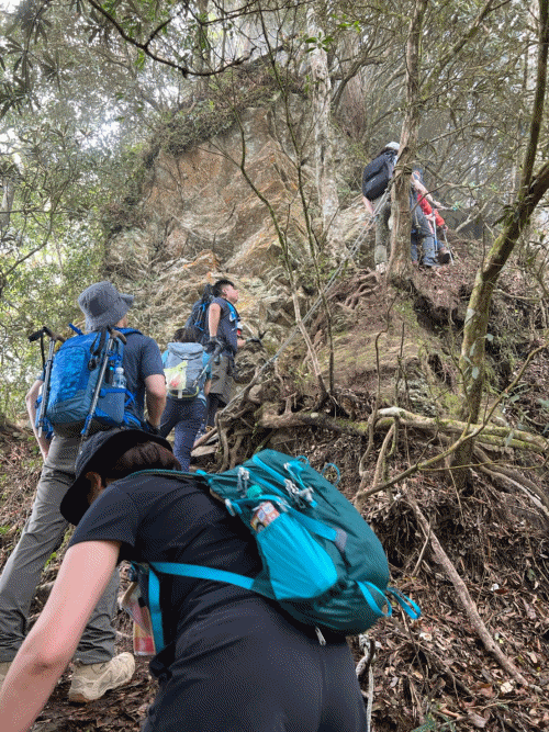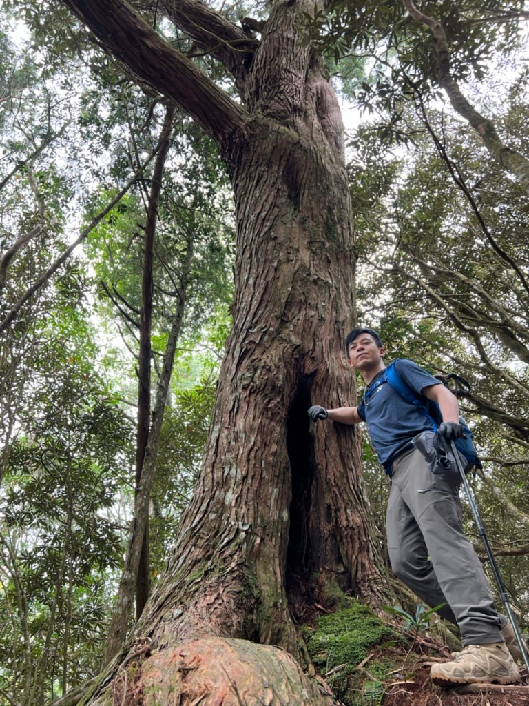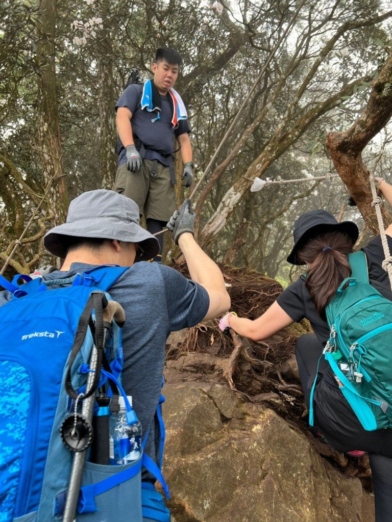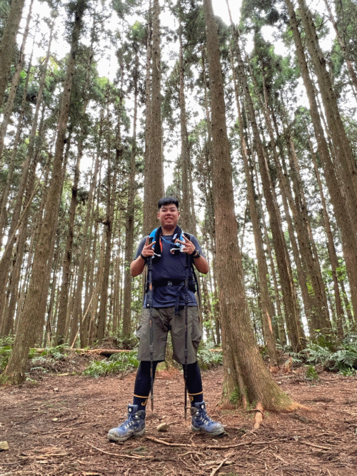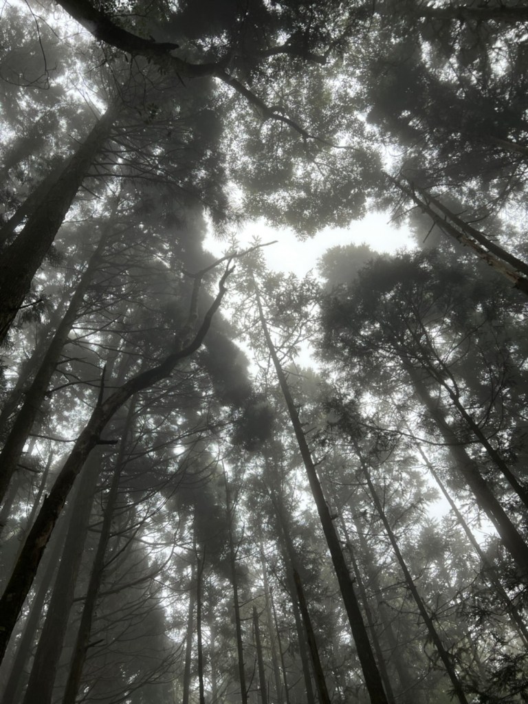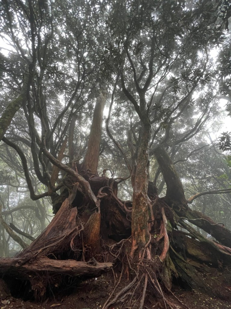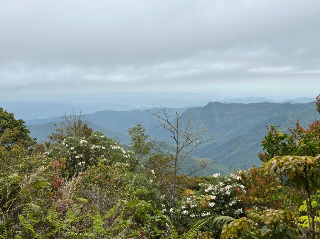 STH : 非常大眾化的路線,光看停靠的車輛,絕對破兩百人。前段前往高台山的陡上路線是個很不錯的熱身,但是因為人超多,跟著前方的人走走停停有點累,到了姑婆芋林的時候也沒有好的角度可以拍照,一直陡上直到林項改變進入柳杉人造林,路線開始好走,也能感受到心靈的放鬆,可惜今天沒有陽光可以拍攝光影,加上帳篷與人很多,為了移除雜物,適合拍照的地點不多。到達高台觀景台時也是人數眾多,大家排隊拍照,有個大叔還告訴我們,山上的白花是台灣種的杜鵑。沿途的樹木的姿態非常的多樣化,遇到了三顆很美麗的樹木,每顆都有自己的特色,但是需要仔細觀察,有的美景沒回頭是看不到的。我們走左上右下的P型路線,前往小島田的路線不算困難,但是明顯的,地面開始比較溼滑難走,前往中島田的路線很多攀爬路段,有的攀爬路線偏原始、有的布滿鬆軟的松針,每段攀爬都有著自己的特色,途中跟著前人走還迷路走到路線外側的植披,沒有拉繩、沒有樹枝可以拉,且越靠近大島田,路面就越濕,可能出發前幾天的雨勢引響,大家的鞋子褲管都髒髒的泥巴,路上也很難找到平坦地可以休息放飯。在大島田吃午餐是我們第一次使用地布野餐,看來大家都算蠻滿意的。回程的路段高低起伏但是屬於平坦,不會太難走。可能因為氣候使然,過午雲霧較重也較濕,氣溫也很明顯地降低,好險沒穿夏天的裝備,要不然真的會出事,但是雲霧繚繞的柳杉林很美,很值得。台灣不大,承佑遇到兩個認識的,而我們也在回到高台露營區時遇到約妹子的牛哥,只能說牛哥懂約。 17:從去年就一直看這條路線,終於成行了~感謝各位大大!CP值很高的一條路線,一次撿四座山,還讓你練手臂!確定成行時,這次有比較認真在找路線+看網路影片,對於一開始的陡上+近90度攀爬已有做好心理準備,但~陡上真的好累,而且還有一堆人在前在後,雖然自己的速度也不快,但也覺得前面人的速度忽快忽慢~想超車也卡卡。然後近90度的攀爬,怎麼會有趴2趴3…啊影片跟文章怎麼都沒說,害我一直覺得只有一段! 走了好久好久~~才到大島田山,有適合的空地放飯,今天勞煩S大大幫背午餐,但也不要像垃圾一樣掛在背包外面咩~這次準備了三顆自製飯糰+章魚小熱狗+芭樂,還有還有冰冰涼涼的「阿薩姆奶茶」<唯一缺點就是會想上廁所!> 當天天候狀況不是太好,去程就遇到開始起霧了,下山時更是走在山嵐之中,每個人都是仙女仙子,能見度超差~~且一心以為自己有帶頭灯,結果回家後隔了2、3天打開登山小箱箱才發現~欸!它躺在裡邊休息~還好在行走時尚可不用,不然就gg了! 下山的路雖然平緩許多,BUT一下爛泥巴、一下樹幹橫倒路中間,走起來也是無法加快速度~而且腳打滑溜滑梯了,還好有登山杖撐著,不然不知溜去哪了! 回程在露營區看到熟悉的背影,原來啊牛牛真的跑來這兒露營了,他們扛了好多罐啤酒上來,是想??