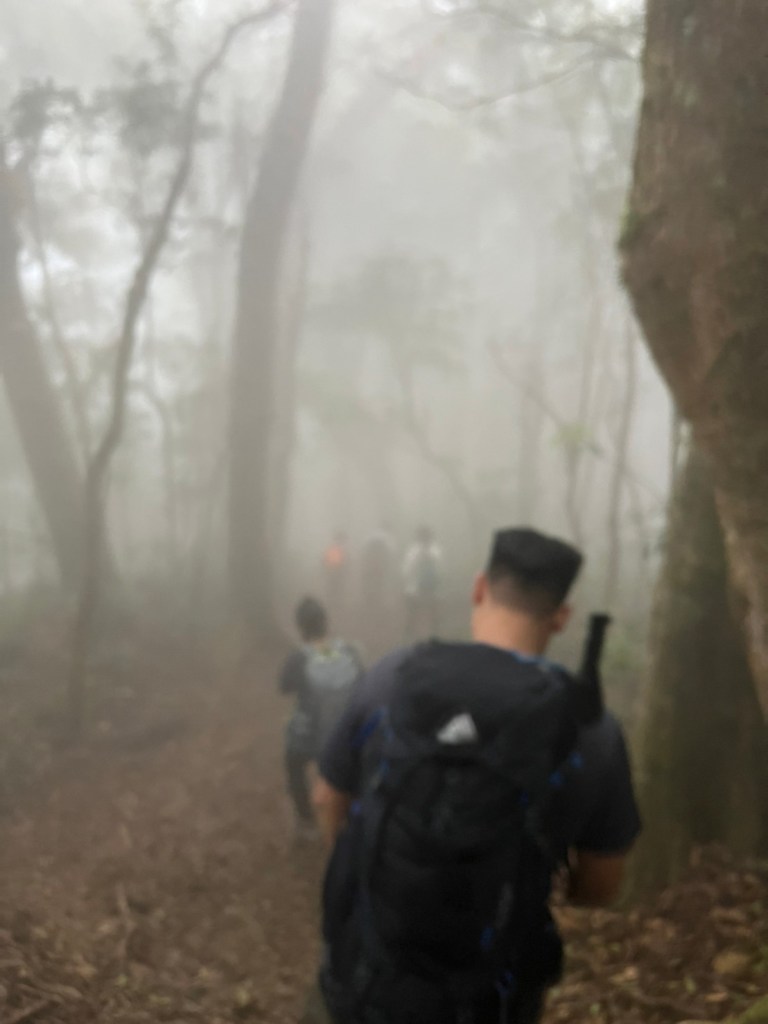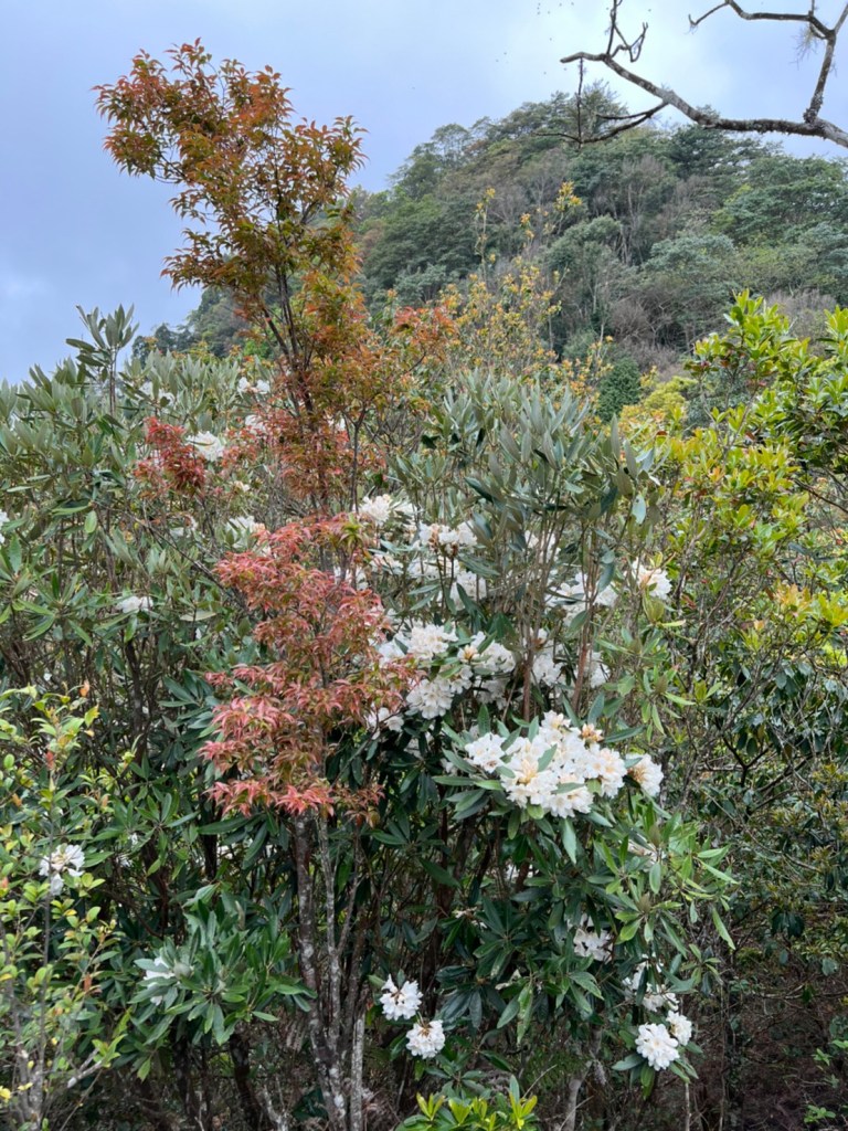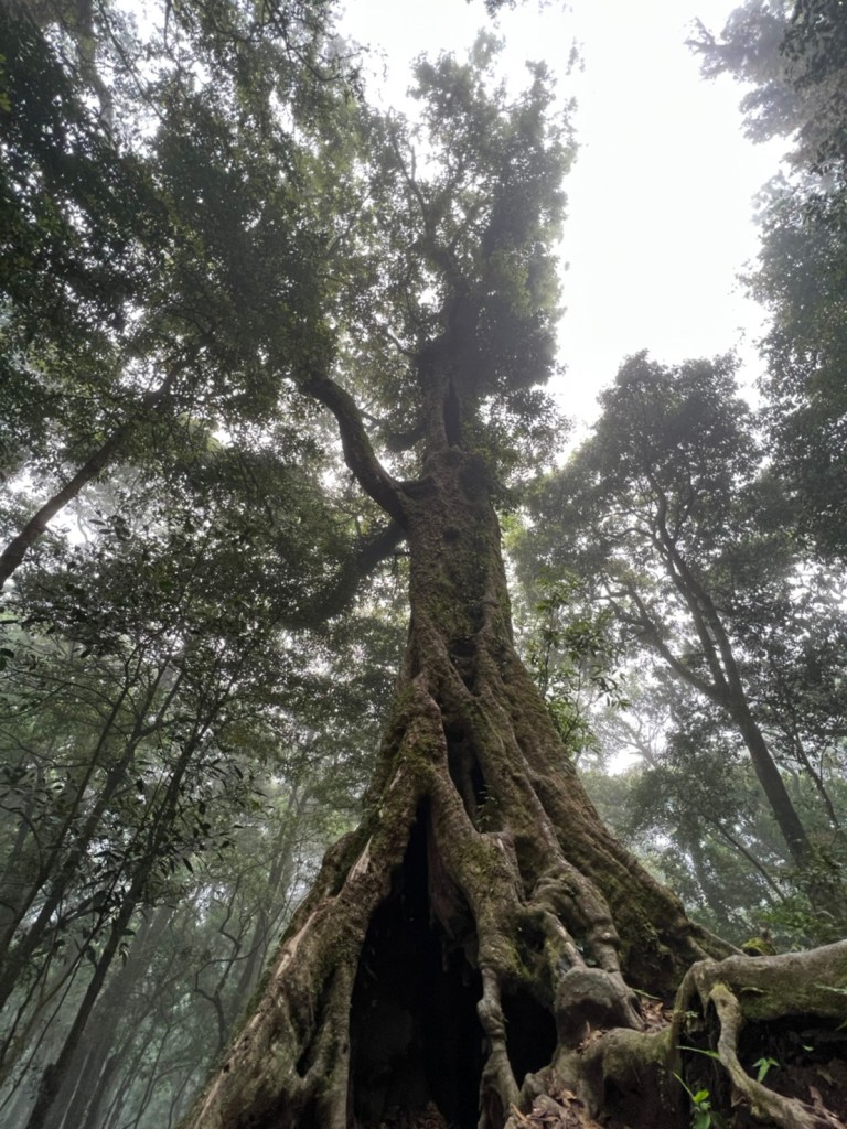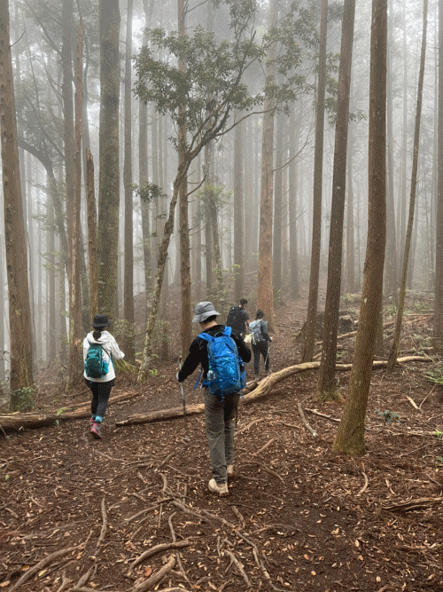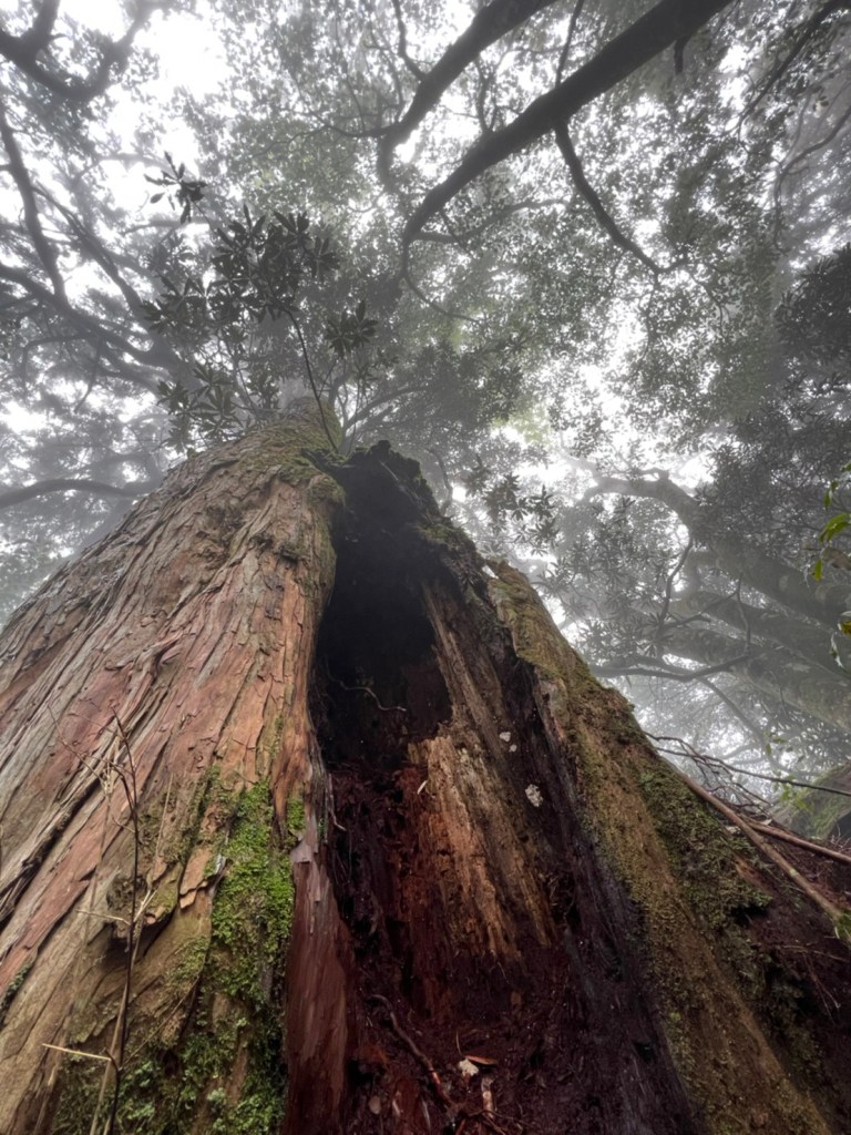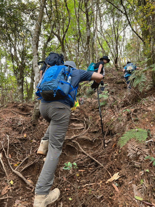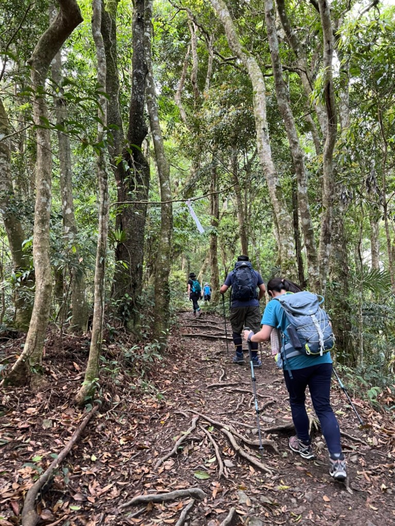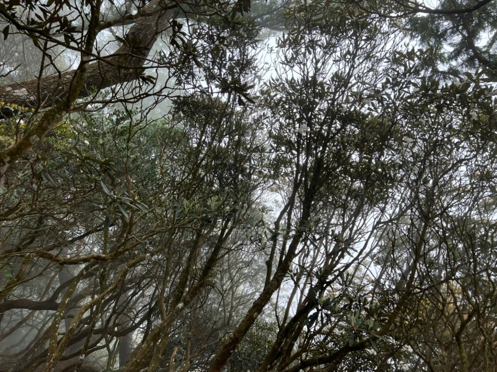 STH : 非常大眾化的路線,光看停靠的車輛,絕對破兩百人。前段前往高台山的陡上路線是個很不錯的熱身,但是因為人超多,跟著前方的人走走停停有點累,到了姑婆芋林的時候也沒有好的角度可以拍照,一直陡上直到林項改變進入柳杉人造林,路線開始好走,也能感受到心靈的放鬆,可惜今天沒有陽光可以拍攝光影,加上帳篷與人很多,為了移除雜物,適合拍照的地點不多。到達高台觀景台時也是人數眾多,大家排隊拍照,有個大叔還告訴我們,山上的白花是台灣種的杜鵑。沿途的樹木的姿態非常的多樣化,遇到了三顆很美麗的樹木,每顆都有自己的特色,但是需要仔細觀察,有的美景沒回頭是看不到的。我們走左上右下的P型路線,前往小島田的路線不算困難,但是明顯的,地面開始比較溼滑難走,前往中島田的路線很多攀爬路段,有的攀爬路線偏原始、有的布滿鬆軟的松針,每段攀爬都有著自己的特色,途中跟著前人走還迷路走到路線外側的植披,沒有拉繩、沒有樹枝可以拉,且越靠近大島田,路面就越濕,可能出發前幾天的雨勢引響,大家的鞋子褲管都髒髒的泥巴,路上也很難找到平坦地可以休息放飯。在大島田吃午餐是我們第一次使用地布野餐,看來大家都算蠻滿意的。回程的路段高低起伏但是屬於平坦,不會太難走。可能因為氣候使然,過午雲霧較重也較濕,氣溫也很明顯地降低,好險沒穿夏天的裝備,要不然真的會出事,但是雲霧繚繞的柳杉林很美,很值得。台灣不大,承佑遇到兩個認識的,而我們也在回到高台露營區時遇到約妹子的牛哥,只能說牛哥懂約。 17:從去年就一直看這條路線,終於成行了~感謝各位大大!CP值很高的一條路線,一次撿四座山,還讓你練手臂!確定成行時,這次有比較認真在找路線+看網路影片,對於一開始的陡上+近90度攀爬已有做好心理準備,但~陡上真的好累,而且還有一堆人在前在後,雖然自己的速度也不快,但也覺得前面人的速度忽快忽慢~想超車也卡卡。然後近90度的攀爬,怎麼會有趴2趴3…啊影片跟文章怎麼都沒說,害我一直覺得只有一段! 走了好久好久~~才到大島田山,有適合的空地放飯,今天勞煩S大大幫背午餐,但也不要像垃圾一樣掛在背包外面咩~這次準備了三顆自製飯糰+章魚小熱狗+芭樂,還有還有冰冰涼涼的「阿薩姆奶茶」<唯一缺點就是會想上廁所!> 當天天候狀況不是太好,去程就遇到開始起霧了,下山時更是走在山嵐之中,每個人都是仙女仙子,能見度超差~~且一心以為自己有帶頭灯,結果回家後隔了2、3天打開登山小箱箱才發現~欸!它躺在裡邊休息~還好在行走時尚可不用,不然就gg了! 下山的路雖然平緩許多,BUT一下爛泥巴、一下樹幹橫倒路中間,走起來也是無法加快速度~而且腳打滑溜滑梯了,還好有登山杖撐著,不然不知溜去哪了! 回程在露營區看到熟悉的背影,原來啊牛牛真的跑來這兒露營了,他們扛了好多罐啤酒上來,是想??