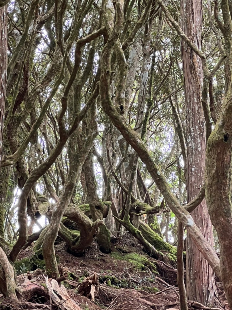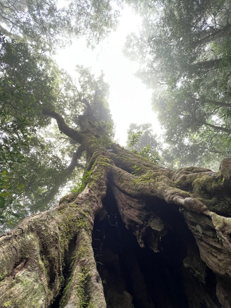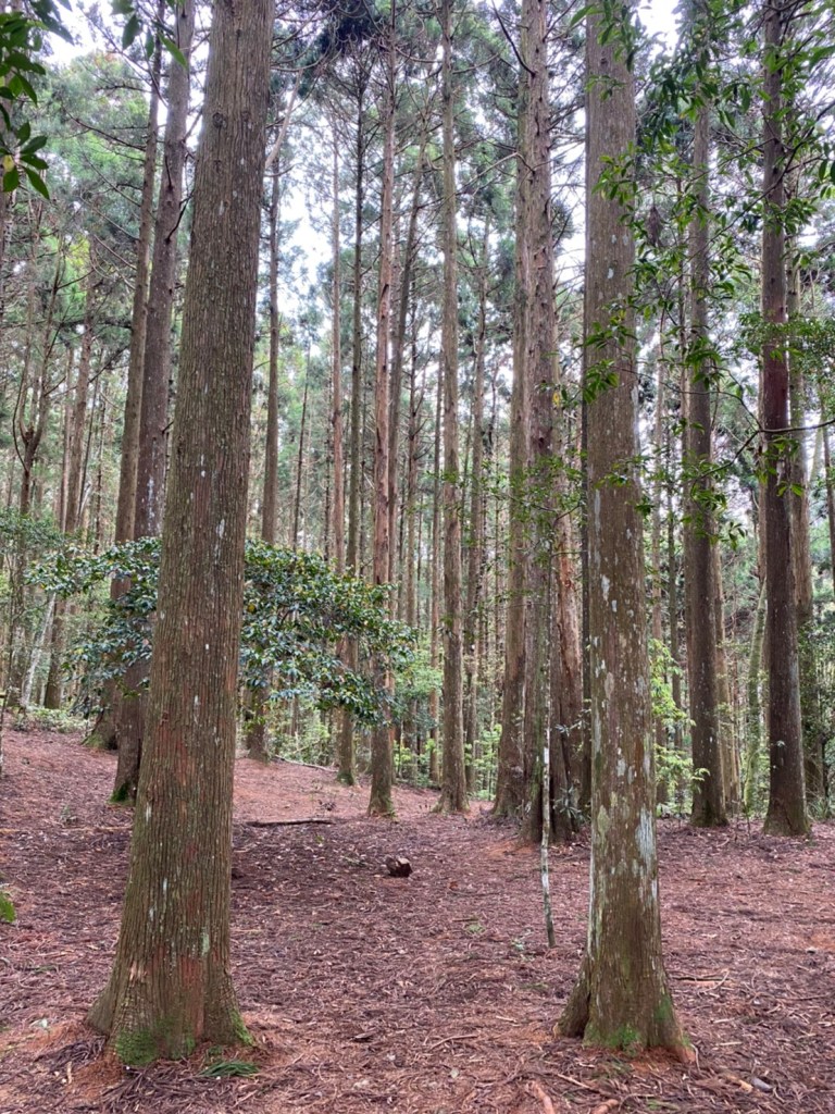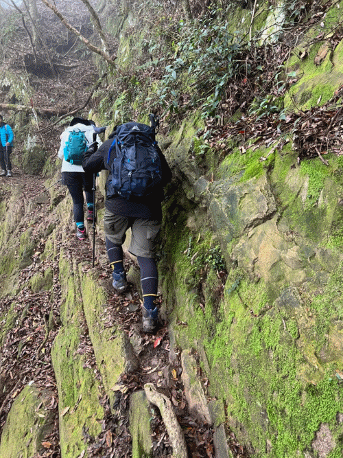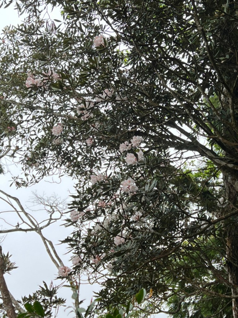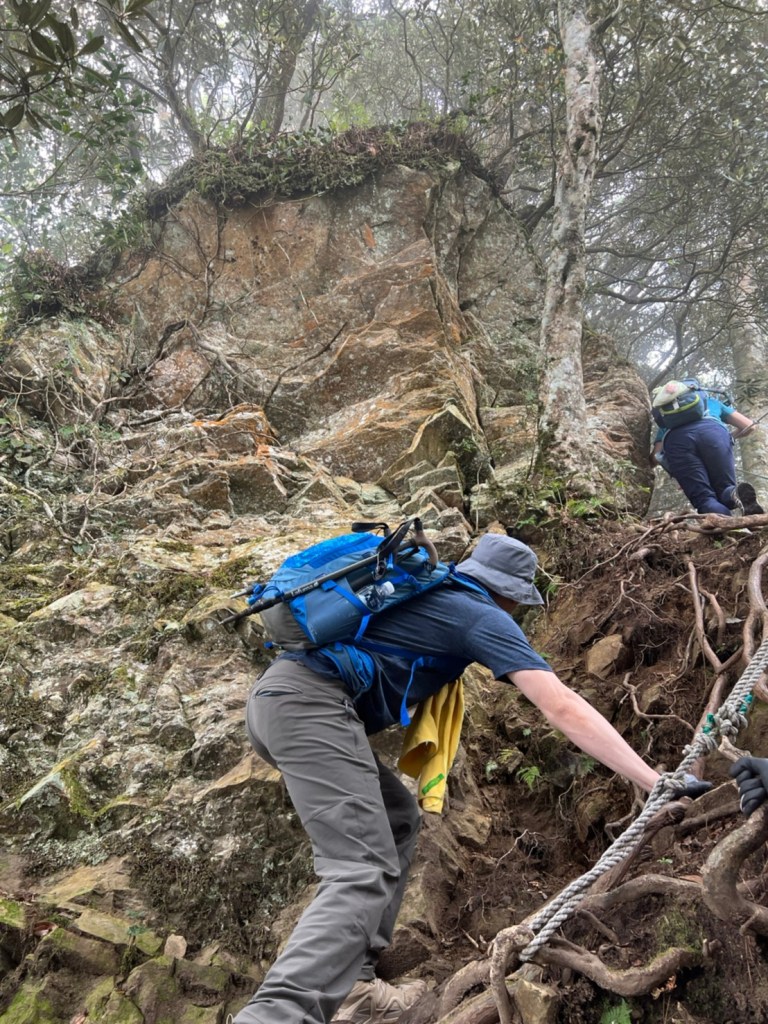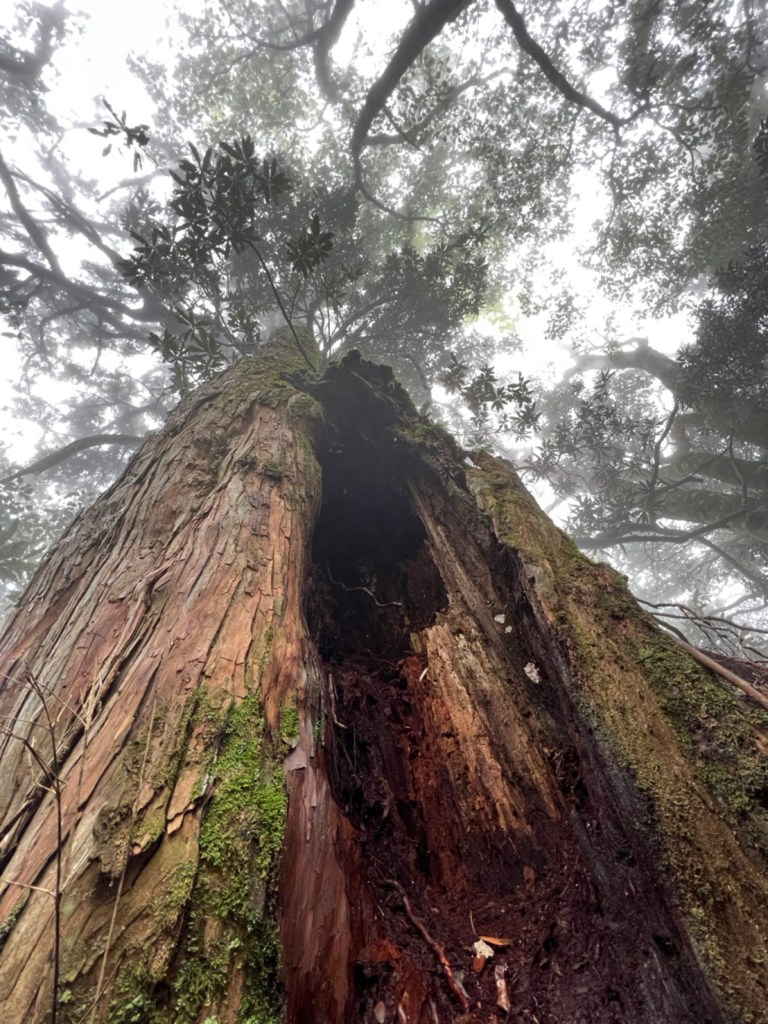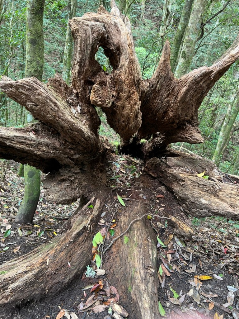 STH : 非常大眾化的路線,光看停靠的車輛,絕對破兩百人。前段前往高台山的陡上路線是個很不錯的熱身,但是因為人超多,跟著前方的人走走停停有點累,到了姑婆芋林的時候也沒有好的角度可以拍照,一直陡上直到林項改變進入柳杉人造林,路線開始好走,也能感受到心靈的放鬆,可惜今天沒有陽光可以拍攝光影,加上帳篷與人很多,為了移除雜物,適合拍照的地點不多。到達高台觀景台時也是人數眾多,大家排隊拍照,有個大叔還告訴我們,山上的白花是台灣種的杜鵑。沿途的樹木的姿態非常的多樣化,遇到了三顆很美麗的樹木,每顆都有自己的特色,但是需要仔細觀察,有的美景沒回頭是看不到的。我們走左上右下的P型路線,前往小島田的路線不算困難,但是明顯的,地面開始比較溼滑難走,前往中島田的路線很多攀爬路段,有的攀爬路線偏原始、有的布滿鬆軟的松針,每段攀爬都有著自己的特色,途中跟著前人走還迷路走到路線外側的植披,沒有拉繩、沒有樹枝可以拉,且越靠近大島田,路面就越濕,可能出發前幾天的雨勢引響,大家的鞋子褲管都髒髒的泥巴,路上也很難找到平坦地可以休息放飯。在大島田吃午餐是我們第一次使用地布野餐,看來大家都算蠻滿意的。回程的路段高低起伏但是屬於平坦,不會太難走。可能因為氣候使然,過午雲霧較重也較濕,氣溫也很明顯地降低,好險沒穿夏天的裝備,要不然真的會出事,但是雲霧繚繞的柳杉林很美,很值得。台灣不大,承佑遇到兩個認識的,而我們也在回到高台露營區時遇到約妹子的牛哥,只能說牛哥懂約。 17:從去年就一直看這條路線,終於成行了~感謝各位大大!CP值很高的一條路線,一次撿四座山,還讓你練手臂!確定成行時,這次有比較認真在找路線+看網路影片,對於一開始的陡上+近90度攀爬已有做好心理準備,但~陡上真的好累,而且還有一堆人在前在後,雖然自己的速度也不快,但也覺得前面人的速度忽快忽慢~想超車也卡卡。然後近90度的攀爬,怎麼會有趴2趴3…啊影片跟文章怎麼都沒說,害我一直覺得只有一段! 走了好久好久~~才到大島田山,有適合的空地放飯,今天勞煩S大大幫背午餐,但也不要像垃圾一樣掛在背包外面咩~這次準備了三顆自製飯糰+章魚小熱狗+芭樂,還有還有冰冰涼涼的「阿薩姆奶茶」<唯一缺點就是會想上廁所!> 當天天候狀況不是太好,去程就遇到開始起霧了,下山時更是走在山嵐之中,每個人都是仙女仙子,能見度超差~~且一心以為自己有帶頭灯,結果回家後隔了2、3天打開登山小箱箱才發現~欸!它躺在裡邊休息~還好在行走時尚可不用,不然就gg了! 下山的路雖然平緩許多,BUT一下爛泥巴、一下樹幹橫倒路中間,走起來也是無法加快速度~而且腳打滑溜滑梯了,還好有登山杖撐著,不然不知溜去哪了! 回程在露營區看到熟悉的背影,原來啊牛牛真的跑來這兒露營了,他們扛了好多罐啤酒上來,是想??