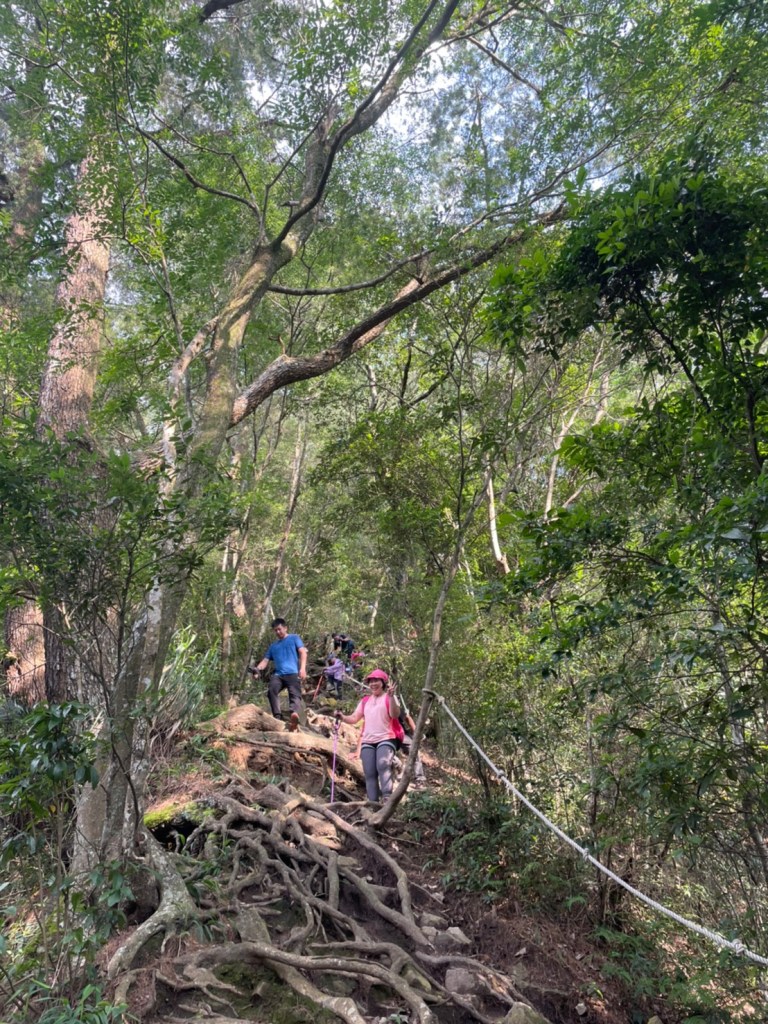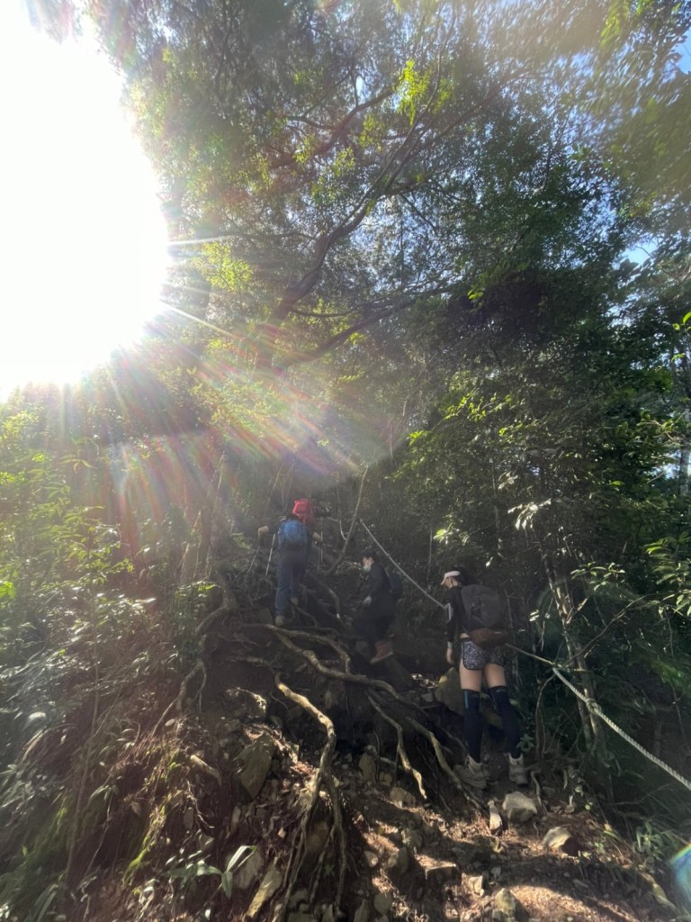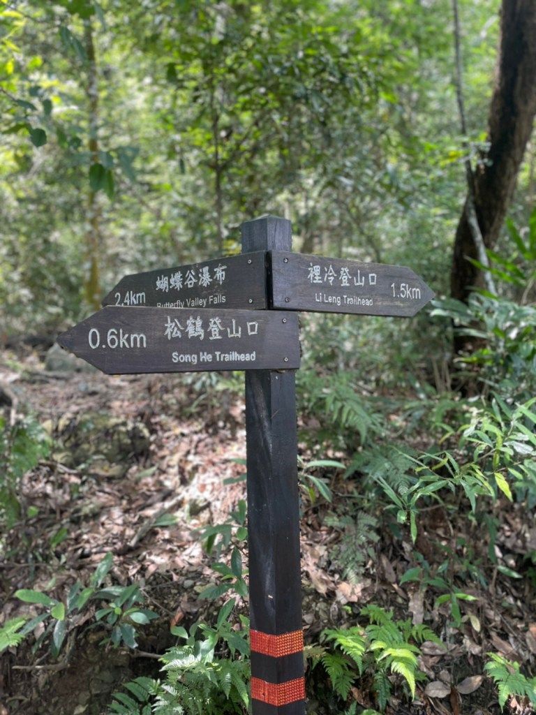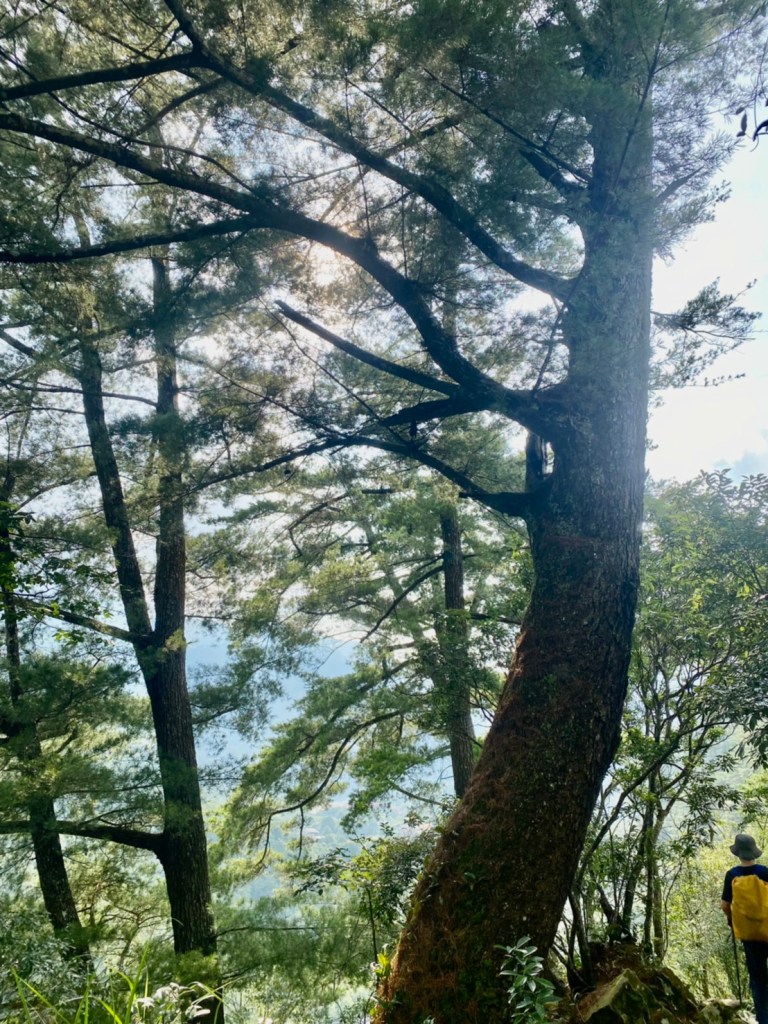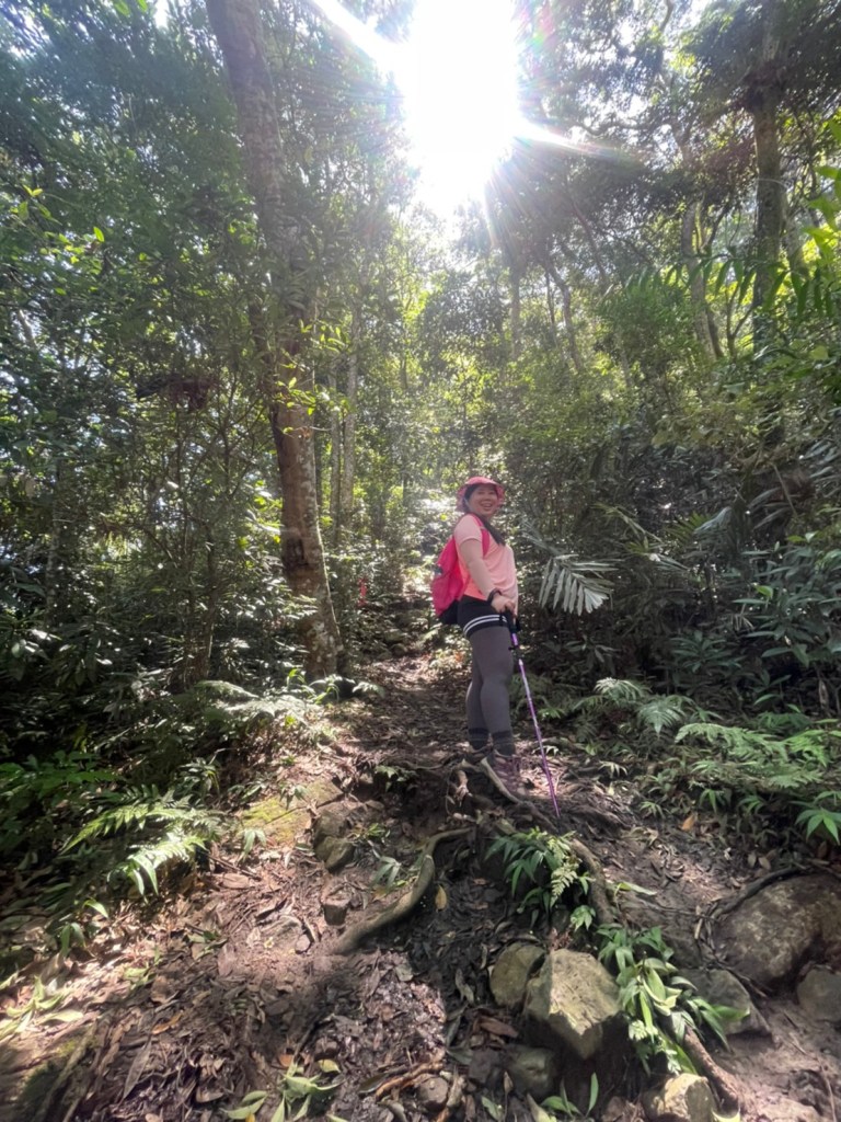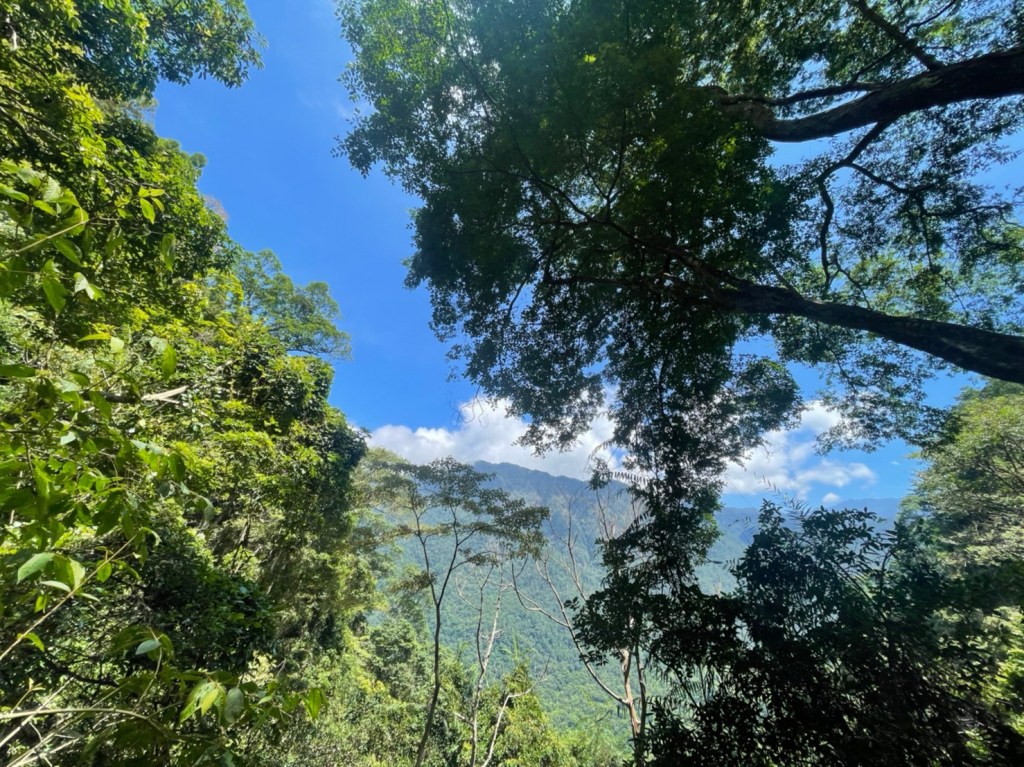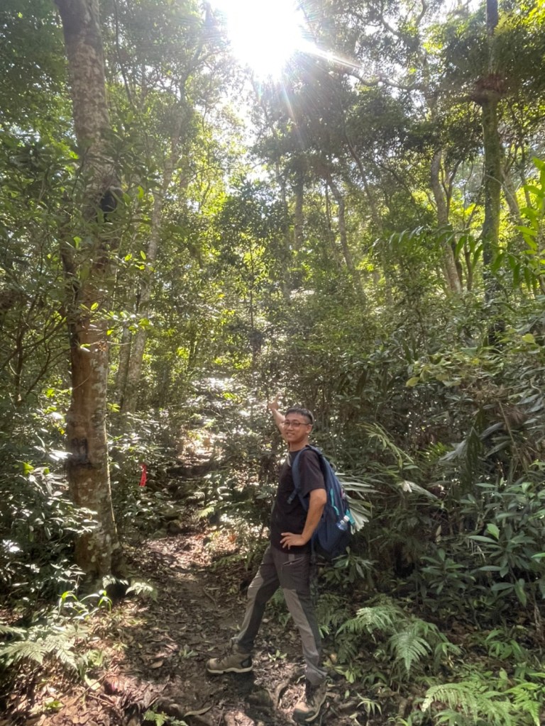 STH : 天氣熱爆了+白冷線一路陡上大腿炸裂+加上小名字跟小畢開了加速器一般的速度+三個月沒爬山,本團開團至今我第一次走到會想偷懶休息,也是第一次把水袋3000多CC的水全部喝光。雖說海拔不高林相變化不大,但還是見到不少巨木巨石展現出的力量美,沿途也有看到不少可以遠眺它山的觀景點,不過因為陡上路段,能夠偷懶休息的平坦地形並不多,藍天白雲好天氣也在悶熱的氣候下成為了無福消受的美。可能是帶了兩位加速師的加持,上到三角點的時間比預期的早,剛好可以讓大家研究打卡app的使用並消化超大量的拍照人群。不知道是不是因為蝴蝶谷瀑布的關係,山上的蝴蝶好多,在三角點也遇到一隻很漂亮的蝴蝶,可惜動作太大驚嚇到了蝴蝶,也更加深了買單眼+長焦鏡頭的念頭。俗話說,現在爬多高晚點就要下多深,一路向下的路段真的是考驗煞車技巧,辛苦了我的雙腿與雙肩。不過前往蝴蝶谷的路段有有因為潮濕與背陽的特性比較不那麼悶熱難受,有個山壁小水瀑那邊很涼爽是個不錯的畫面,可惜為了趕路沒多停留。蝴蝶谷高度的落差與水瀑的寬度比例很好看,除了空拍也很適合合影,水很清澈冰涼,還可以看到不少魚在水裡閃躲著人類大軍,可惜的是平坦腹地不多,但瀑布區有很多蝴蝶飛來飛去,還會停留在人們的身上,貢獻了不少記憶體的空間。來到瀑布區的人都會想跟瀑布合影,但真的會涉水靠近的卻不多,想想,我好像真的很常會把人群帶到更升入的地方去真是對不起山神阿,不過看在此次還帶了泳裝美女,山神因該是會原諒我的。
