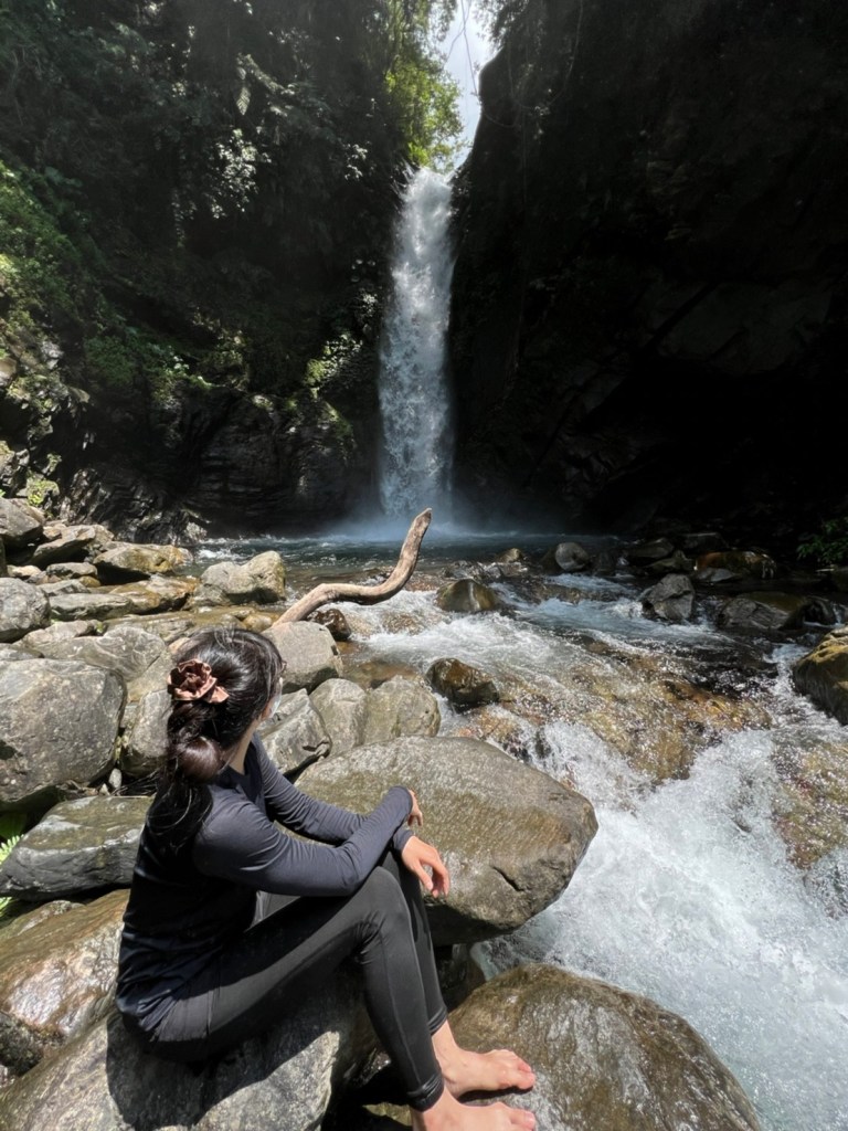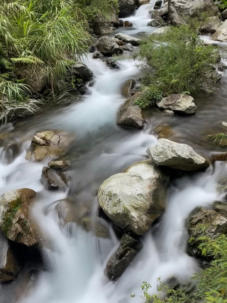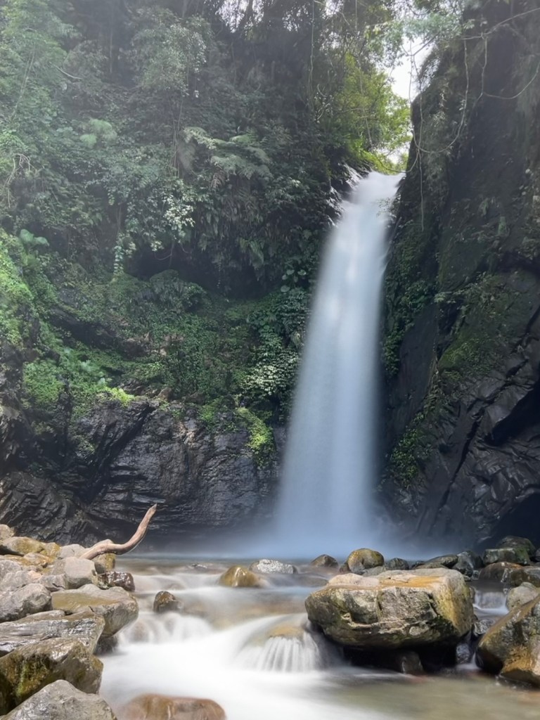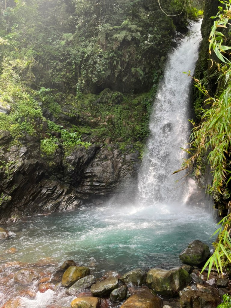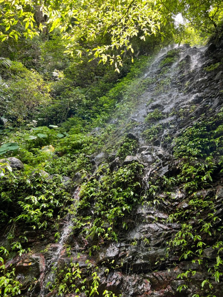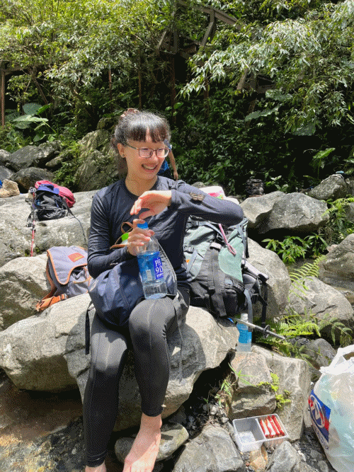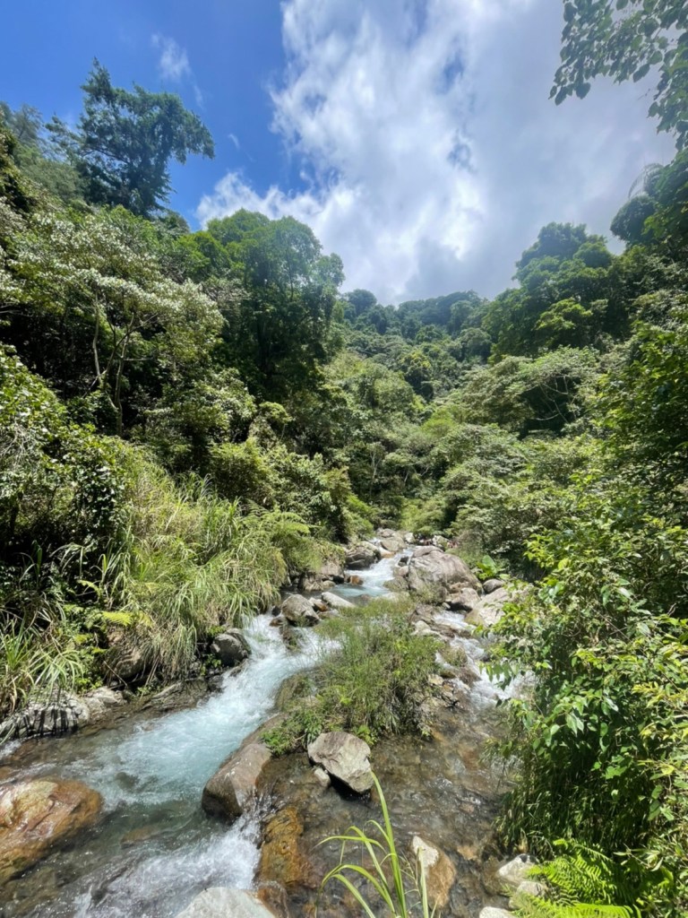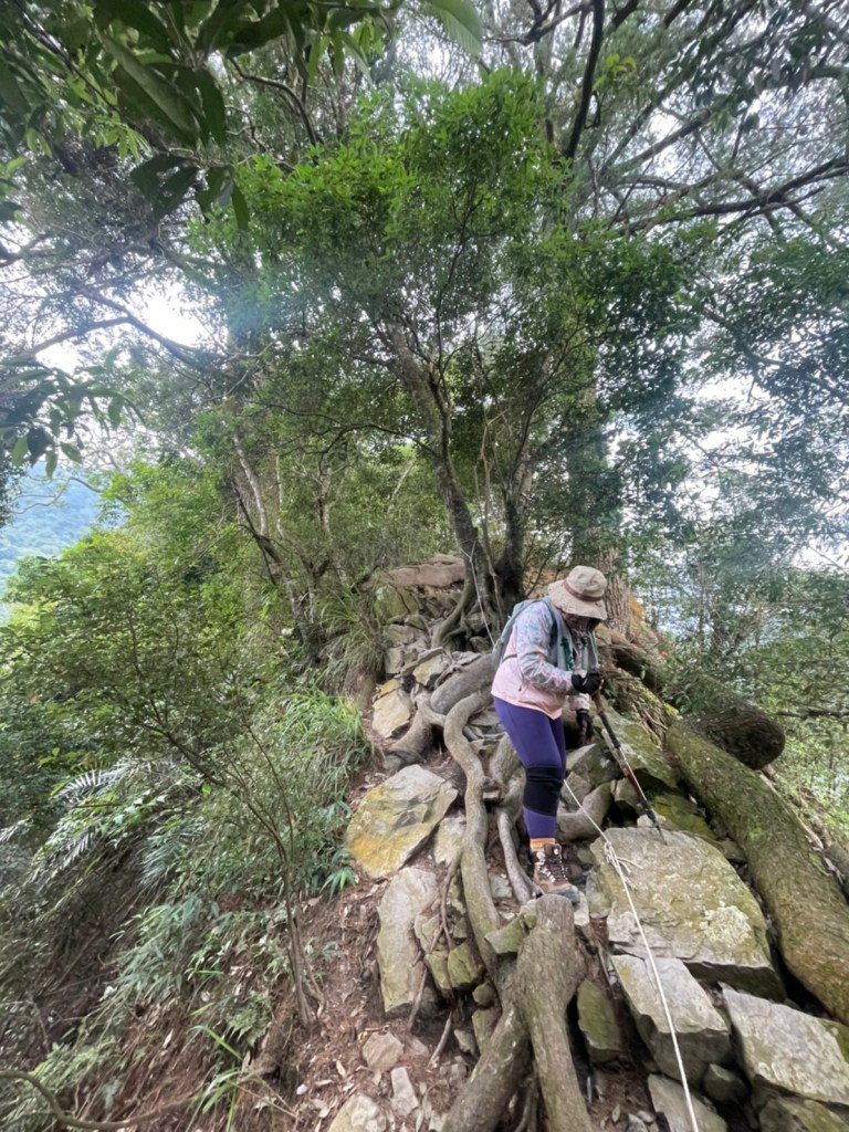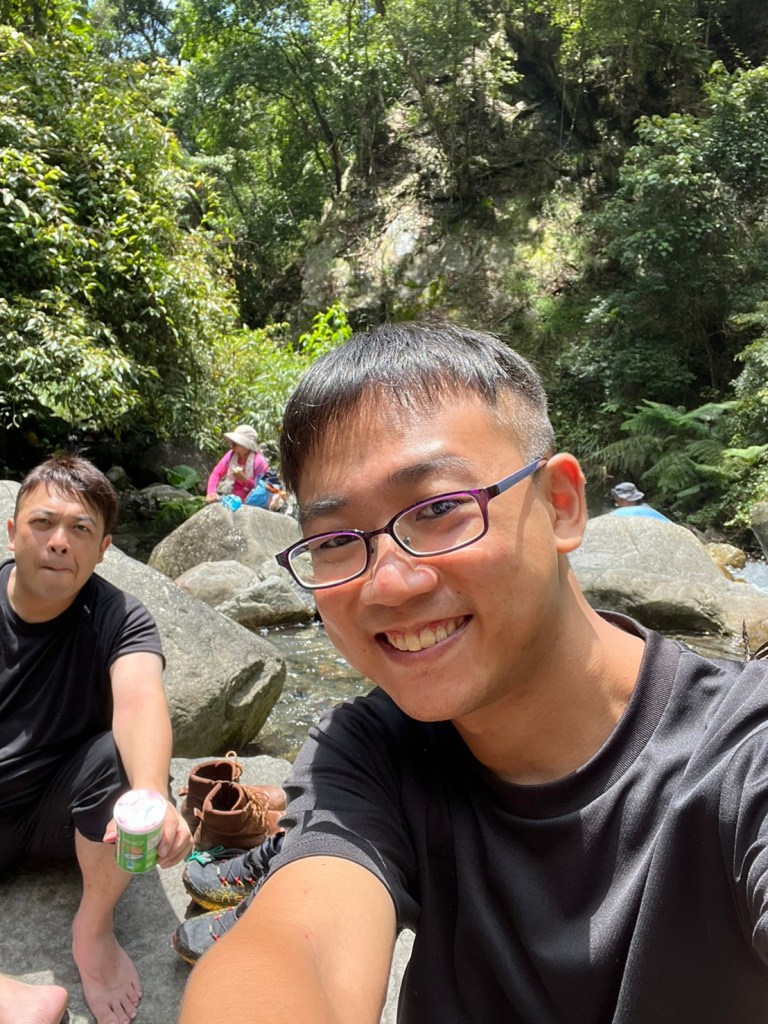 STH : 天氣熱爆了+白冷線一路陡上大腿炸裂+加上小名字跟小畢開了加速器一般的速度+三個月沒爬山,本團開團至今我第一次走到會想偷懶休息,也是第一次把水袋3000多CC的水全部喝光。雖說海拔不高林相變化不大,但還是見到不少巨木巨石展現出的力量美,沿途也有看到不少可以遠眺它山的觀景點,不過因為陡上路段,能夠偷懶休息的平坦地形並不多,藍天白雲好天氣也在悶熱的氣候下成為了無福消受的美。可能是帶了兩位加速師的加持,上到三角點的時間比預期的早,剛好可以讓大家研究打卡app的使用並消化超大量的拍照人群。不知道是不是因為蝴蝶谷瀑布的關係,山上的蝴蝶好多,在三角點也遇到一隻很漂亮的蝴蝶,可惜動作太大驚嚇到了蝴蝶,也更加深了買單眼+長焦鏡頭的念頭。俗話說,現在爬多高晚點就要下多深,一路向下的路段真的是考驗煞車技巧,辛苦了我的雙腿與雙肩。不過前往蝴蝶谷的路段有有因為潮濕與背陽的特性比較不那麼悶熱難受,有個山壁小水瀑那邊很涼爽是個不錯的畫面,可惜為了趕路沒多停留。蝴蝶谷高度的落差與水瀑的寬度比例很好看,除了空拍也很適合合影,水很清澈冰涼,還可以看到不少魚在水裡閃躲著人類大軍,可惜的是平坦腹地不多,但瀑布區有很多蝴蝶飛來飛去,還會停留在人們的身上,貢獻了不少記憶體的空間。來到瀑布區的人都會想跟瀑布合影,但真的會涉水靠近的卻不多,想想,我好像真的很常會把人群帶到更升入的地方去真是對不起山神阿,不過看在此次還帶了泳裝美女,山神因該是會原諒我的。
