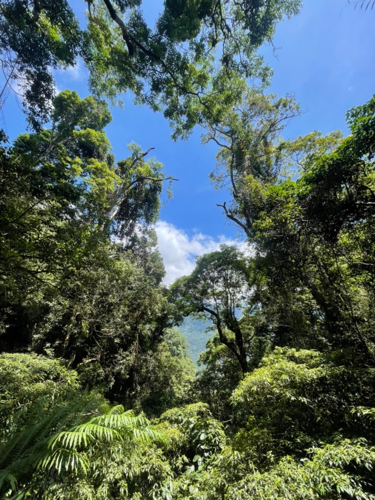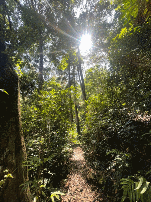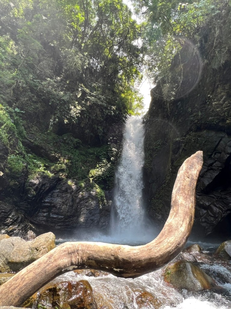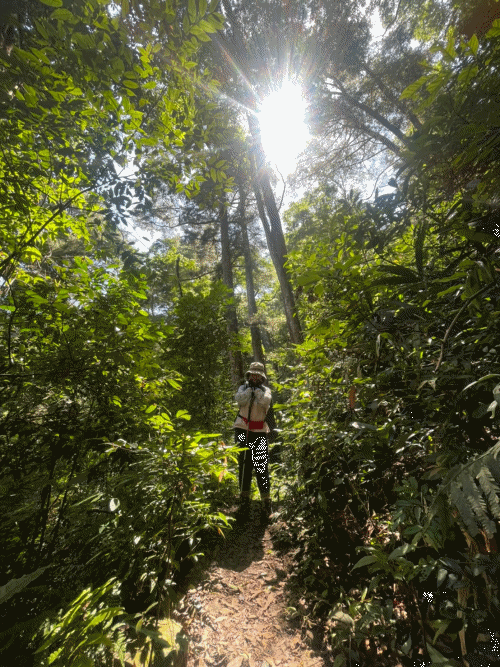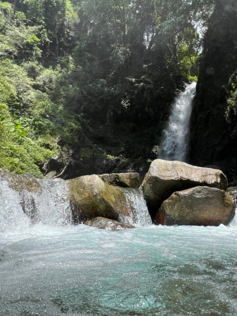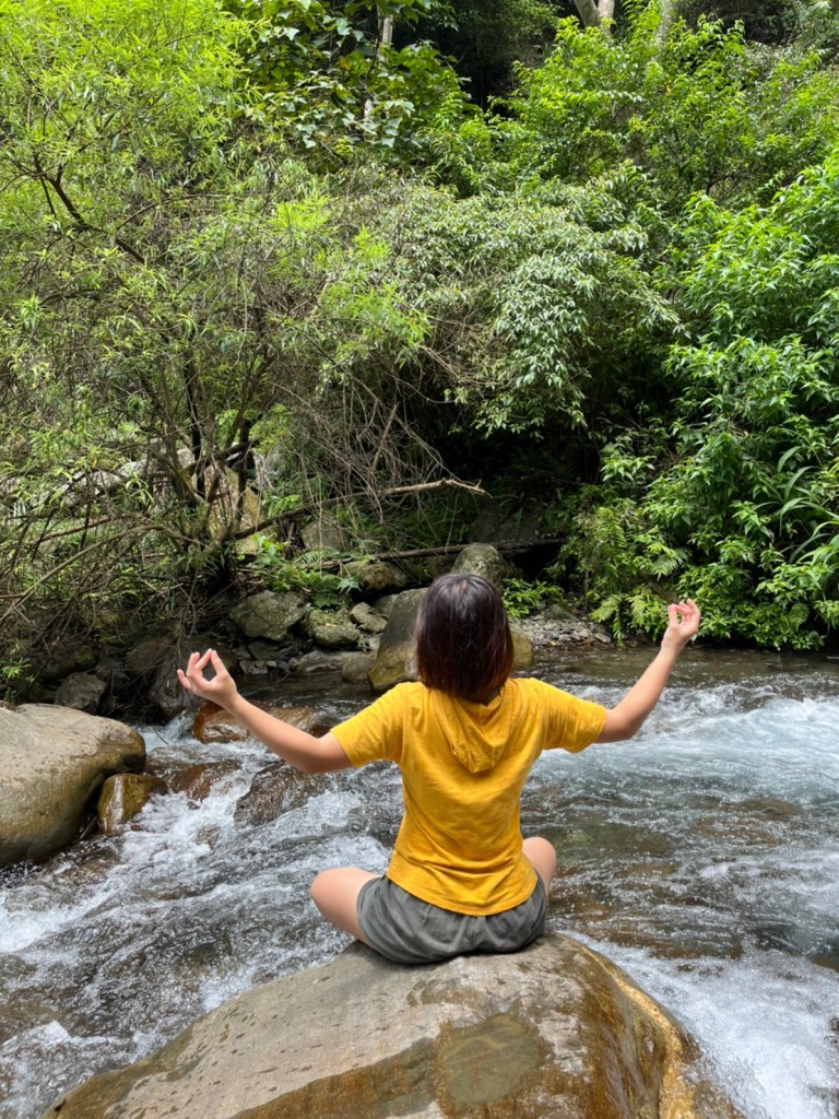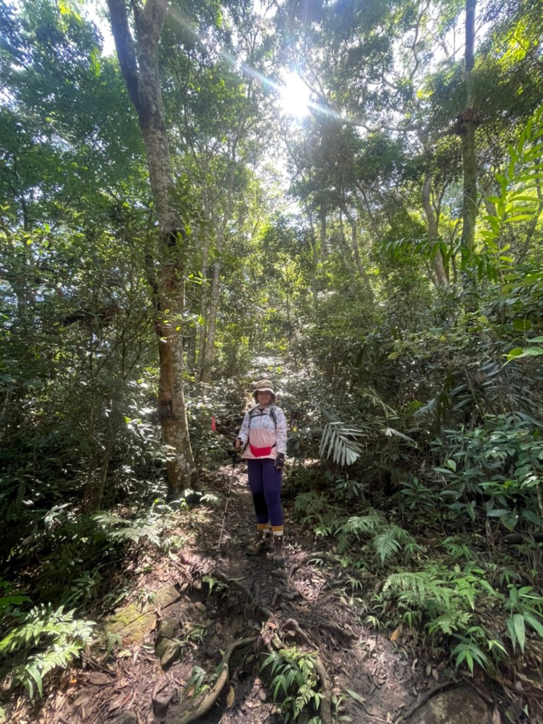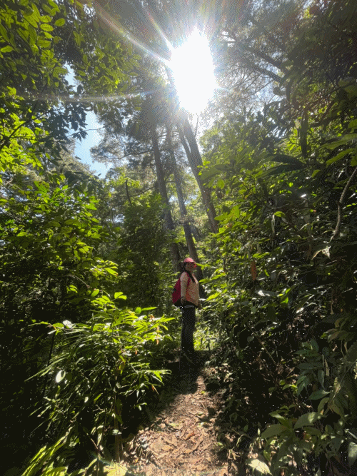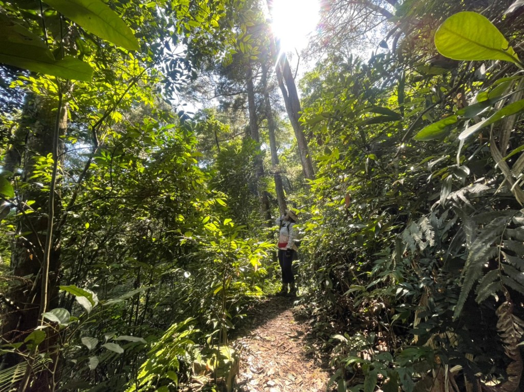 STH : 天氣熱爆了+白冷線一路陡上大腿炸裂+加上小名字跟小畢開了加速器一般的速度+三個月沒爬山,本團開團至今我第一次走到會想偷懶休息,也是第一次把水袋3000多CC的水全部喝光。雖說海拔不高林相變化不大,但還是見到不少巨木巨石展現出的力量美,沿途也有看到不少可以遠眺它山的觀景點,不過因為陡上路段,能夠偷懶休息的平坦地形並不多,藍天白雲好天氣也在悶熱的氣候下成為了無福消受的美。可能是帶了兩位加速師的加持,上到三角點的時間比預期的早,剛好可以讓大家研究打卡app的使用並消化超大量的拍照人群。不知道是不是因為蝴蝶谷瀑布的關係,山上的蝴蝶好多,在三角點也遇到一隻很漂亮的蝴蝶,可惜動作太大驚嚇到了蝴蝶,也更加深了買單眼+長焦鏡頭的念頭。俗話說,現在爬多高晚點就要下多深,一路向下的路段真的是考驗煞車技巧,辛苦了我的雙腿與雙肩。不過前往蝴蝶谷的路段有有因為潮濕與背陽的特性比較不那麼悶熱難受,有個山壁小水瀑那邊很涼爽是個不錯的畫面,可惜為了趕路沒多停留。蝴蝶谷高度的落差與水瀑的寬度比例很好看,除了空拍也很適合合影,水很清澈冰涼,還可以看到不少魚在水裡閃躲著人類大軍,可惜的是平坦腹地不多,但瀑布區有很多蝴蝶飛來飛去,還會停留在人們的身上,貢獻了不少記憶體的空間。來到瀑布區的人都會想跟瀑布合影,但真的會涉水靠近的卻不多,想想,我好像真的很常會把人群帶到更升入的地方去真是對不起山神阿,不過看在此次還帶了泳裝美女,山神因該是會原諒我的。
