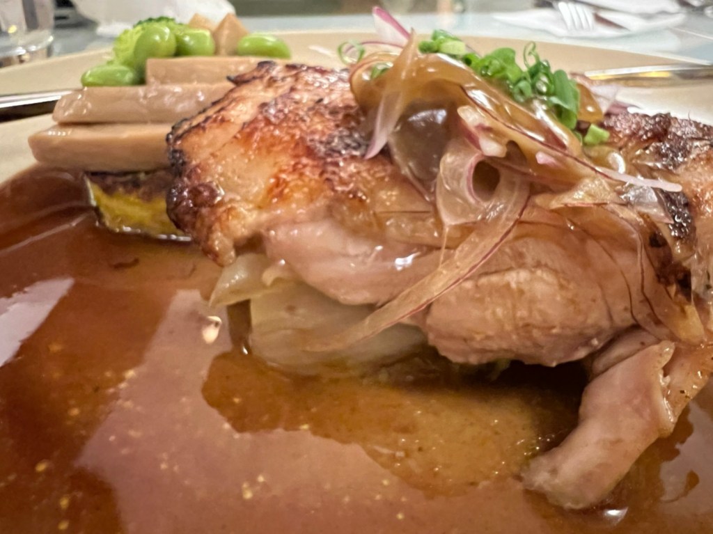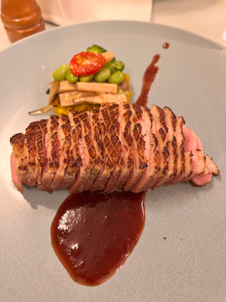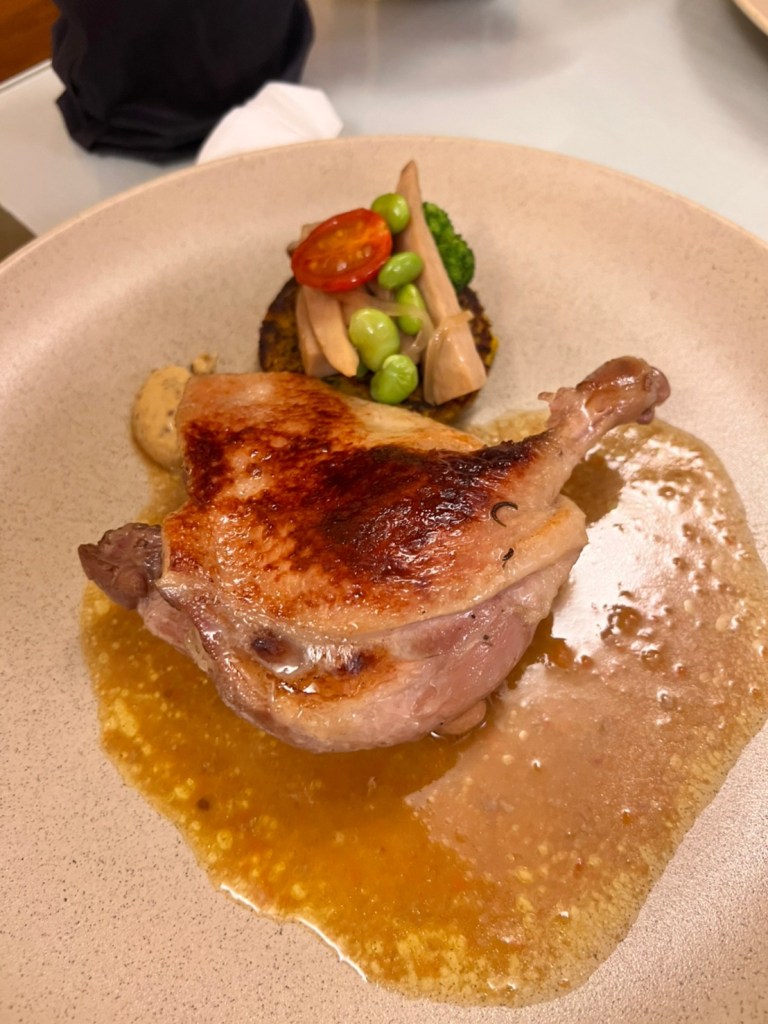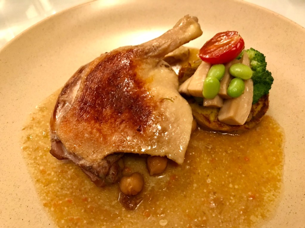 STH : 自從第一次吃過之後,皮耶小館就一直在我的口袋名單之內。室內的感覺很溫馨,點餐與上餐點時也都會介紹餐點的烹調與用餐建議,從餐前的湯品、麵包、沙拉到主餐以及飯後甜點,整體給我溫暖的用餐體驗。主餐前開胃的鳳梨汁可以喝的出來是鳳梨果肉打出來的,可惜味道偏淡,不知是否是為了洗滌口腔裡的味道好迎接後續的主餐。這次吃的主餐是雞腿,口味很和我的胃口,整隻雞腿只有腳踝關節處一小截骨頭,肉質Q彈不柴,且肉汁豐滿,外層醬料的味道與內部雞汁相搭配呈現出給味蕾的享受是舒爽的,其中餐點中的地瓜泥讓CF津津樂道,一直跟大家說地瓜泥很好吃。 17:偷吃別人的最好吃了~~香煎鴨胸吃起來軟軟嫩嫩,果然沒有辜負它的售價!餐前麵包剛烤出來溫熱溫熱的,就算不抹奶油,也是好吃~外酥內軟。自己點了油封宜蘭櫻桃鴨腿佐雪蓮子,一端上來時,不知為何有聞到一股「筍子」的味道,以為配菜裡有含筍,結是把杏鮑菇誤認為筍子。主角本人-鴨腿的外皮吃起來有點點脆,但裡面的肉肉跟鴨胸相比就會略顯較柴。這是歪嘴雞吃美食第一次吃法式料理,也是第一次那麼早散場~希望不管是美食或是爬山都可以維持下去(?!)