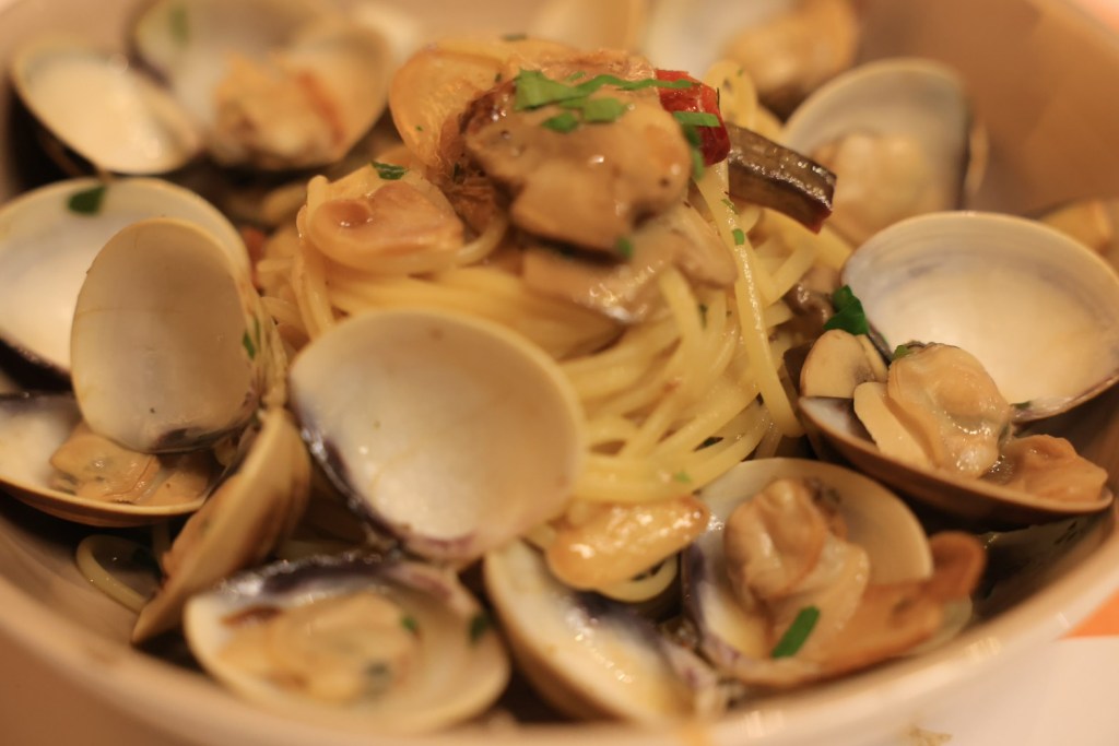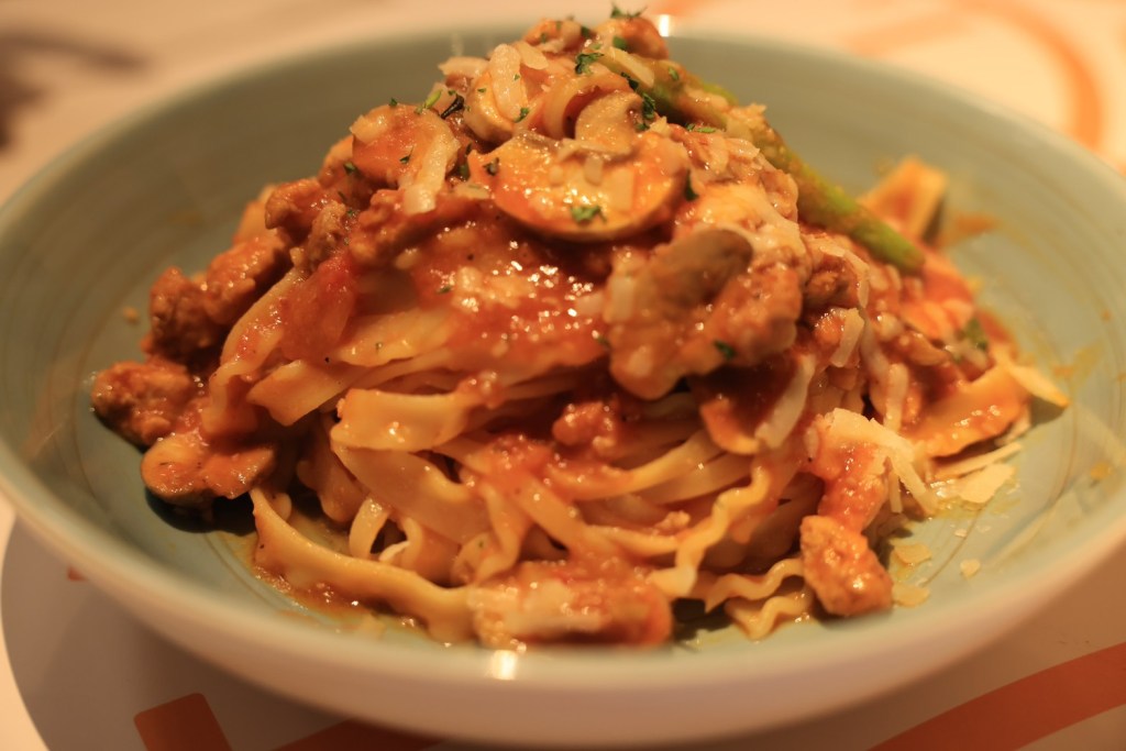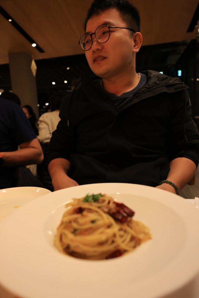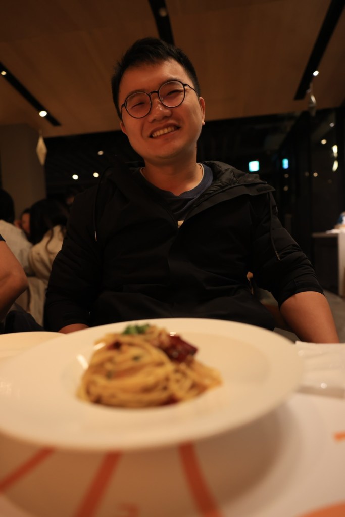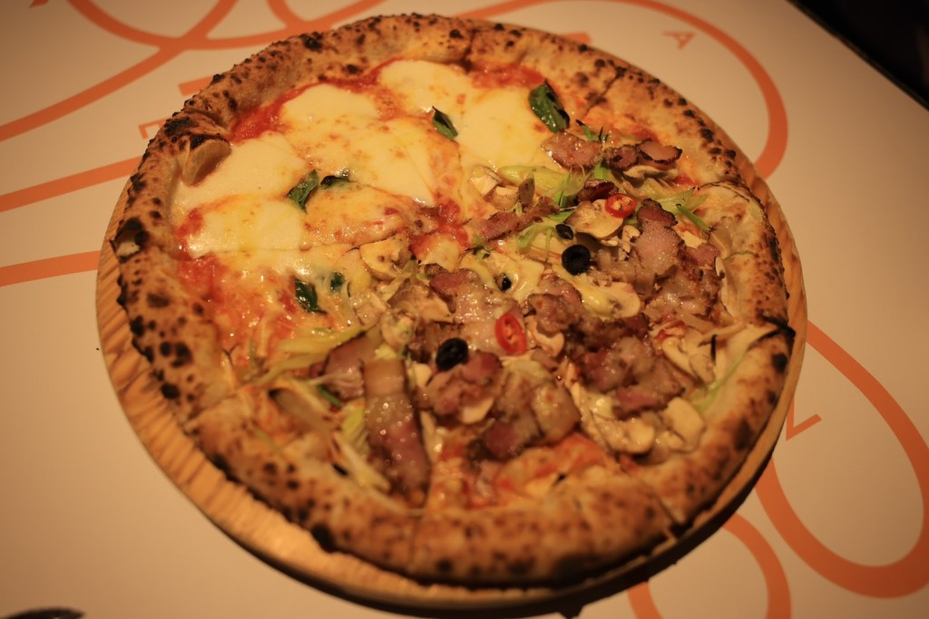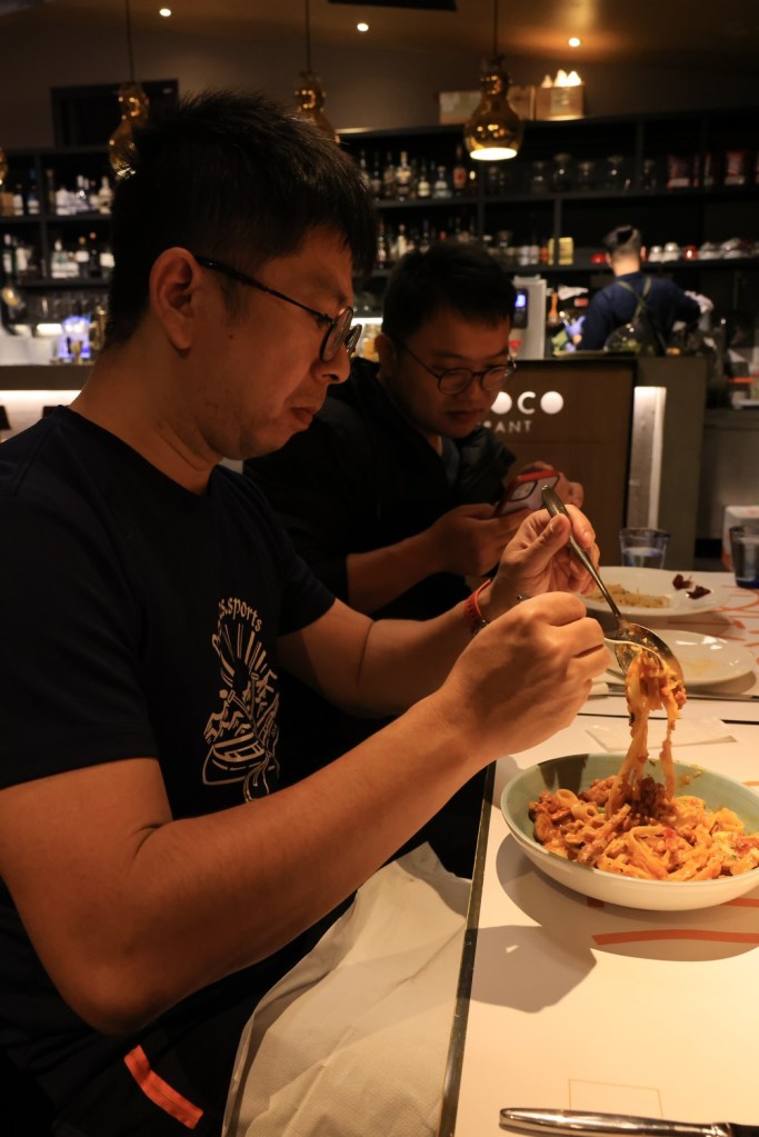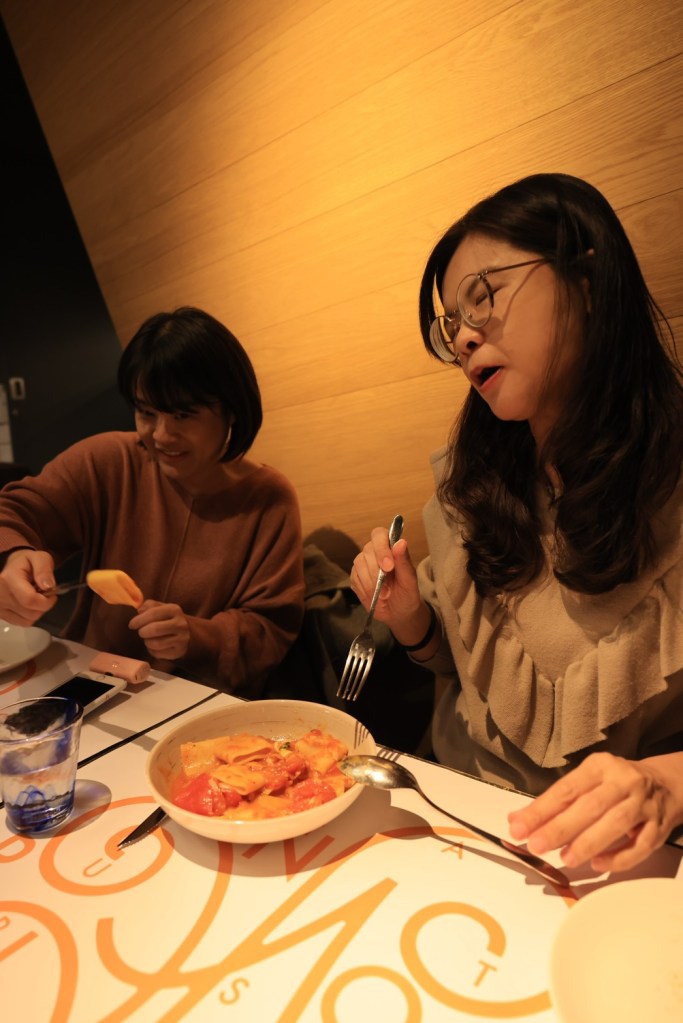 STH : 股癌在podcast上推薦的義大利麵店,餐廳質感很高,裡面還有調酒師bar,整體環境營造得不錯。因為價位偏高,只點了當日濃湯與肉醬義大利麵,當日的南瓜濃,我不喜歡的南瓜味道不會太重,湯是濃稠的,不會太稀,有合我的味蕾。義大利肉醬麵比我想像中的好,肉醬味道有壓過麵條的味道,吃起來不會有突兀的麵粉味,且第一次吃到麵團裡面是熱熱的義大利麵,溫度的保留讓麵條Q彈不會太硬,與肉醬的搭配有加分的效果。雙拼pizza是薄餅的,餡料的味道很香很好吃,pizza邊吃起來脆脆的口感的配合不會讓口感太多單調,可惜大胃王被綁架了,要不然一定多點幾分pizza吃個夠。