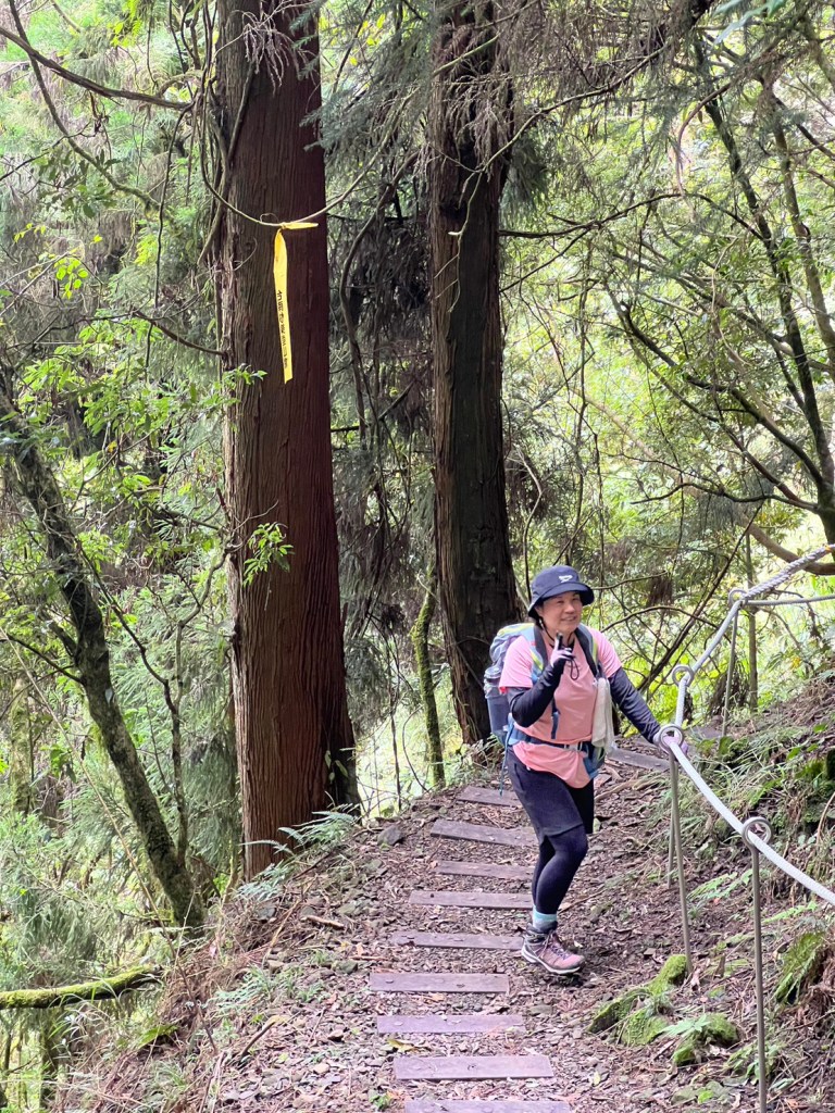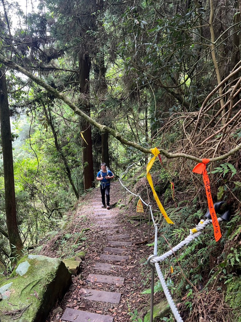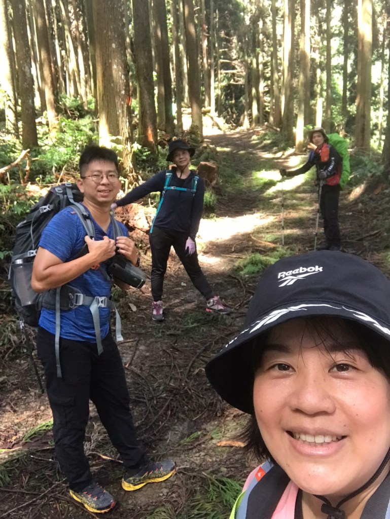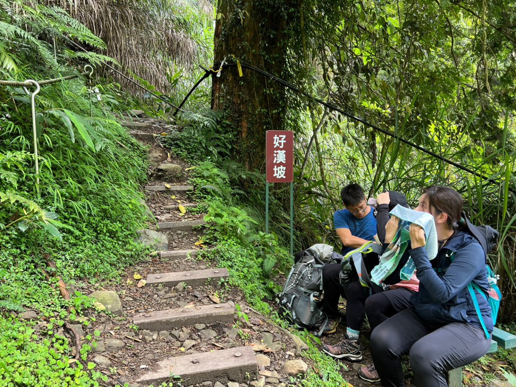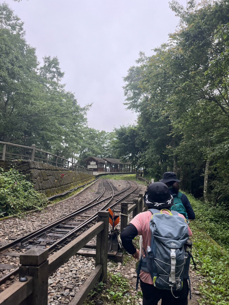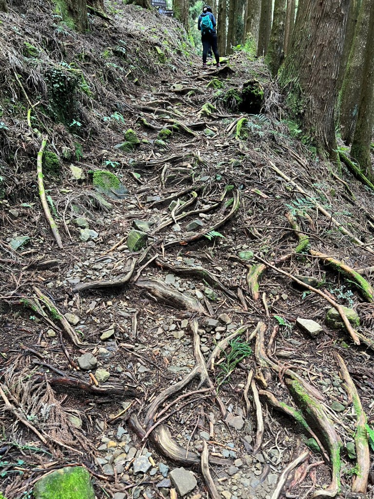 STH : 務必要搭乘街播車,前段路程不短,斜度也很大。前段的階梯不算難走,路也夠寬,走在柳杉林之間的感覺很舒服,不過因為海拔尚低,所以會比較熱。前段路線整體來說不太困難,就時因為前起天有下過雨,地板溼滑,以及一堆的咬人貓。最難走的好漢坡真的不容易,坡度、路窄、地滑、咬人貓。直到上到鐵路之後才好走,這趟非常好運的到了車站才下雨,因為下雨、海拔、與流汗,這次午餐蠻冷的。