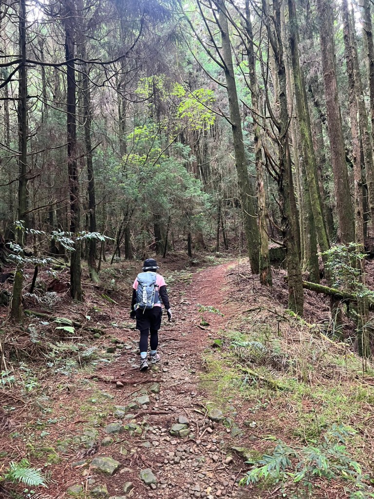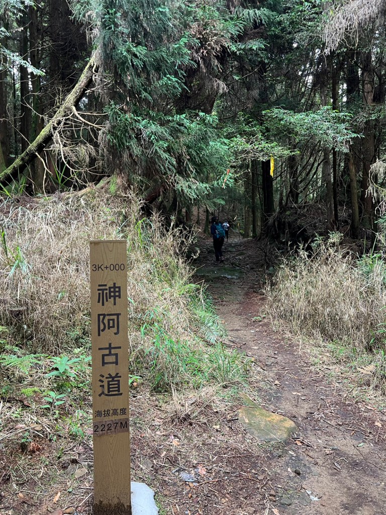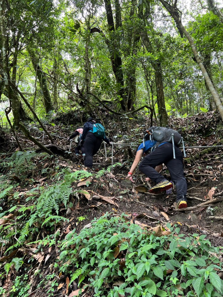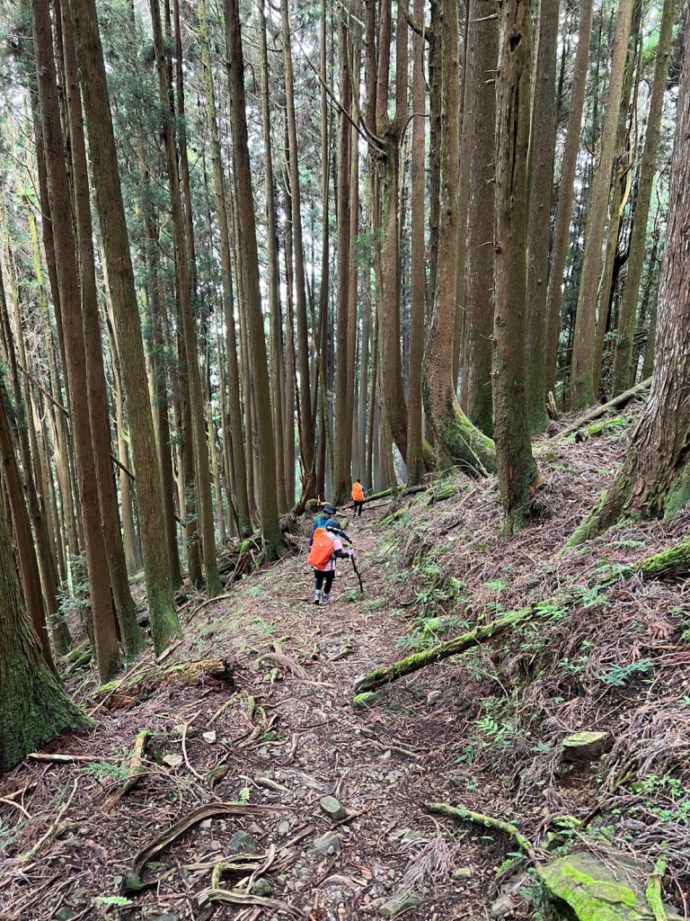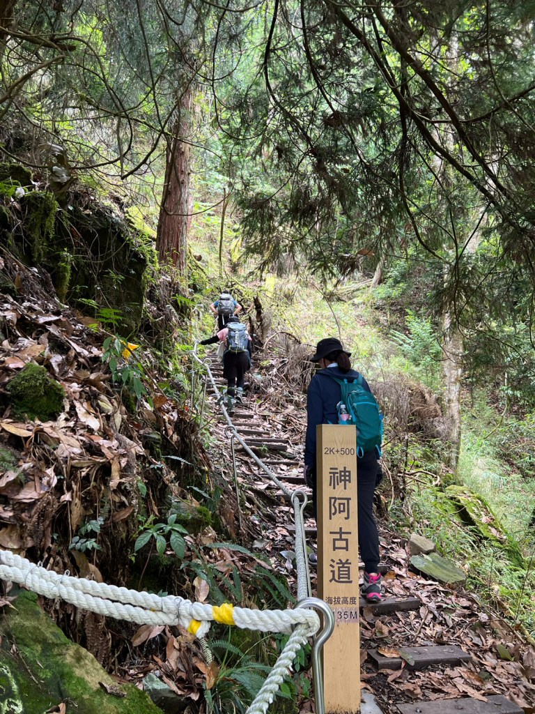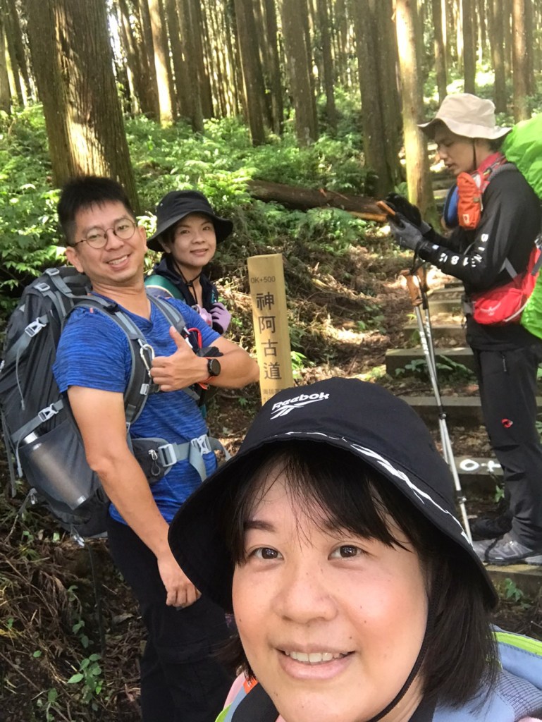 STH : 務必要搭乘街播車,前段路程不短,斜度也很大。前段的階梯不算難走,路也夠寬,走在柳杉林之間的感覺很舒服,不過因為海拔尚低,所以會比較熱。前段路線整體來說不太困難,就時因為前起天有下過雨,地板溼滑,以及一堆的咬人貓。最難走的好漢坡真的不容易,坡度、路窄、地滑、咬人貓。直到上到鐵路之後才好走,這趟非常好運的到了車站才下雨,因為下雨、海拔、與流汗,這次午餐蠻冷的。
