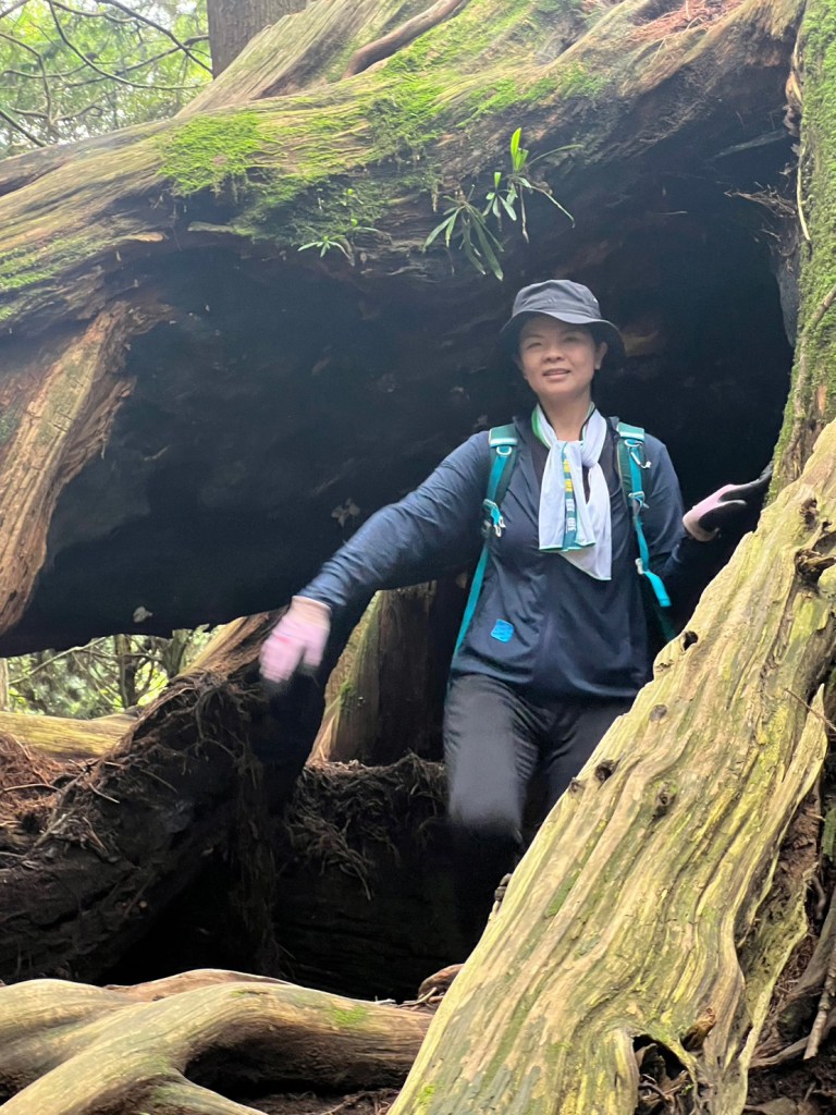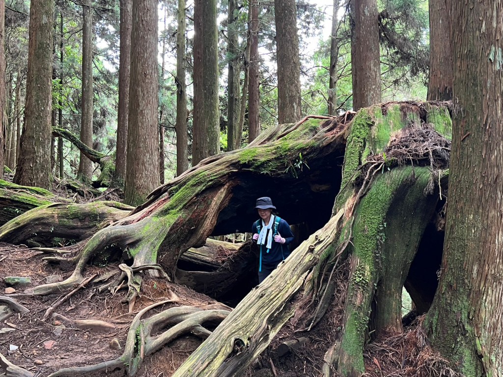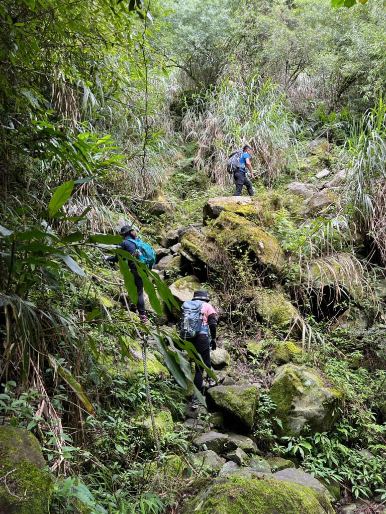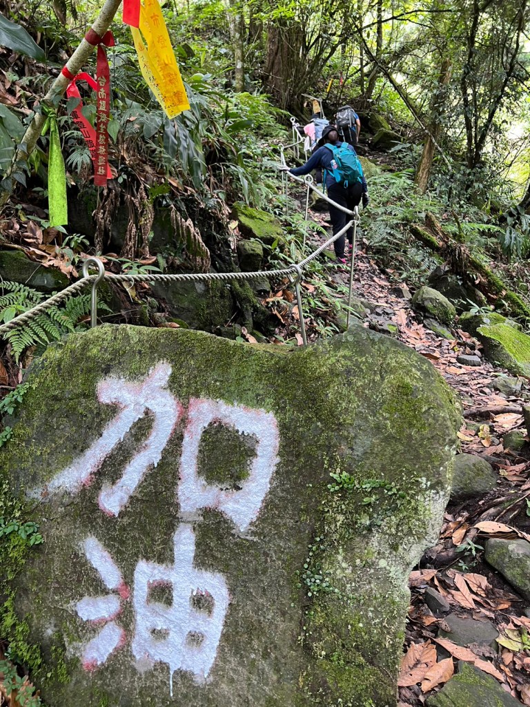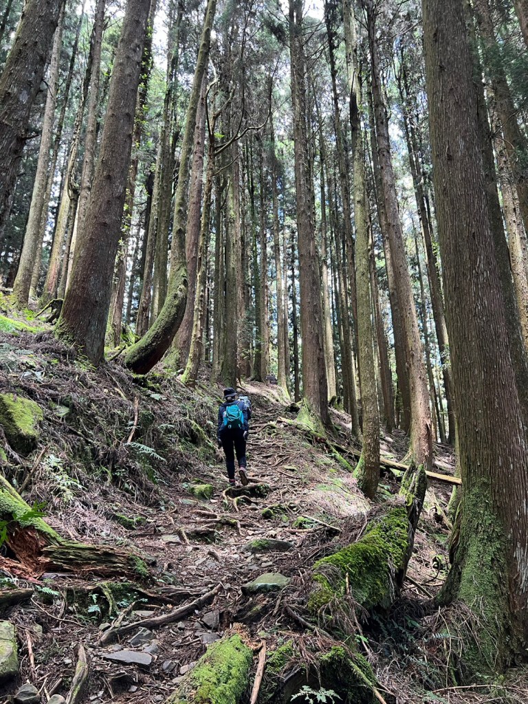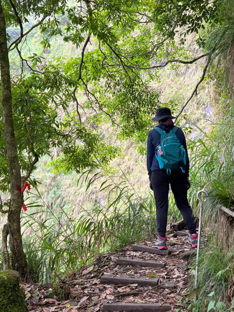 STH : 務必要搭乘街播車,前段路程不短,斜度也很大。前段的階梯不算難走,路也夠寬,走在柳杉林之間的感覺很舒服,不過因為海拔尚低,所以會比較熱。前段路線整體來說不太困難,就時因為前起天有下過雨,地板溼滑,以及一堆的咬人貓。最難走的好漢坡真的不容易,坡度、路窄、地滑、咬人貓。直到上到鐵路之後才好走,這趟非常好運的到了車站才下雨,因為下雨、海拔、與流汗,這次午餐蠻冷的。