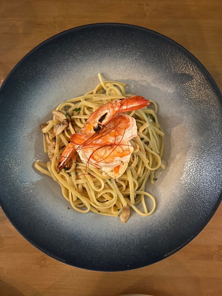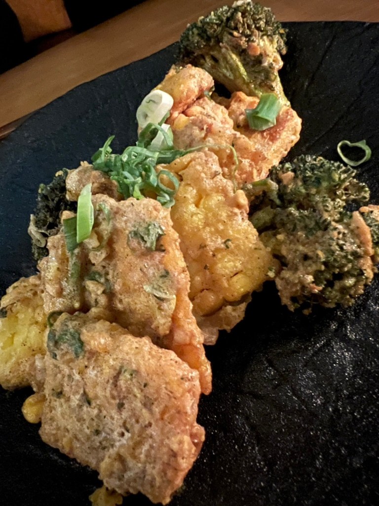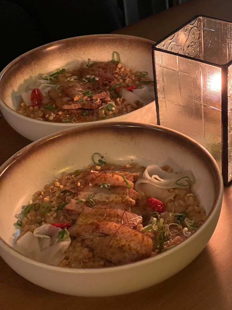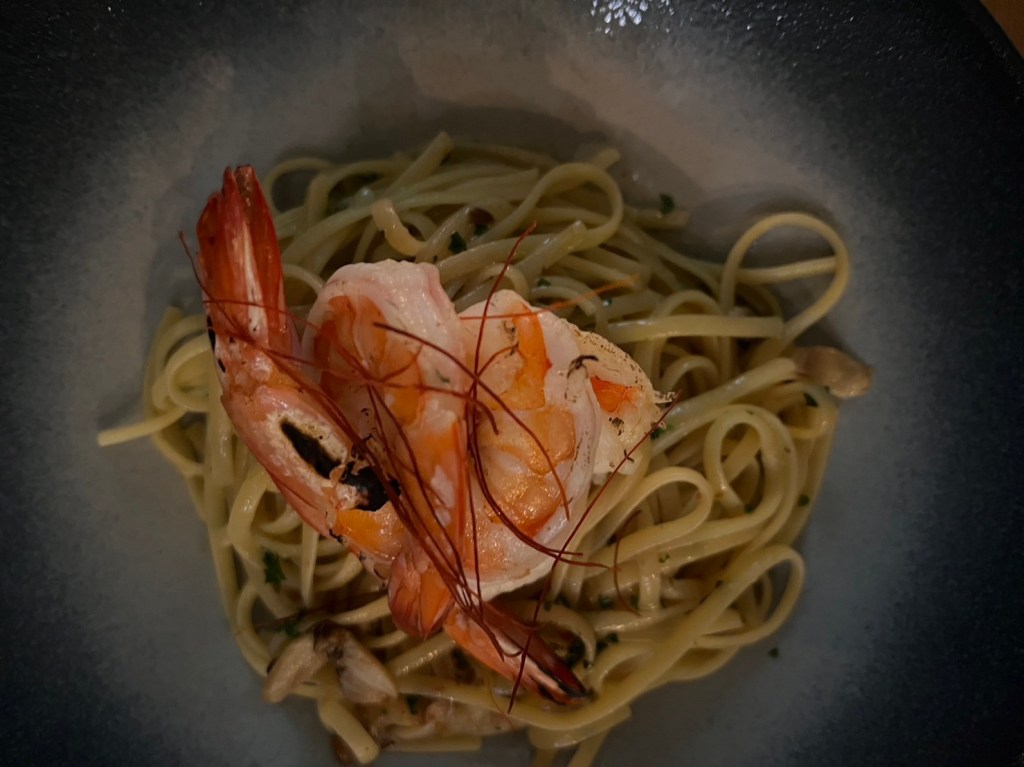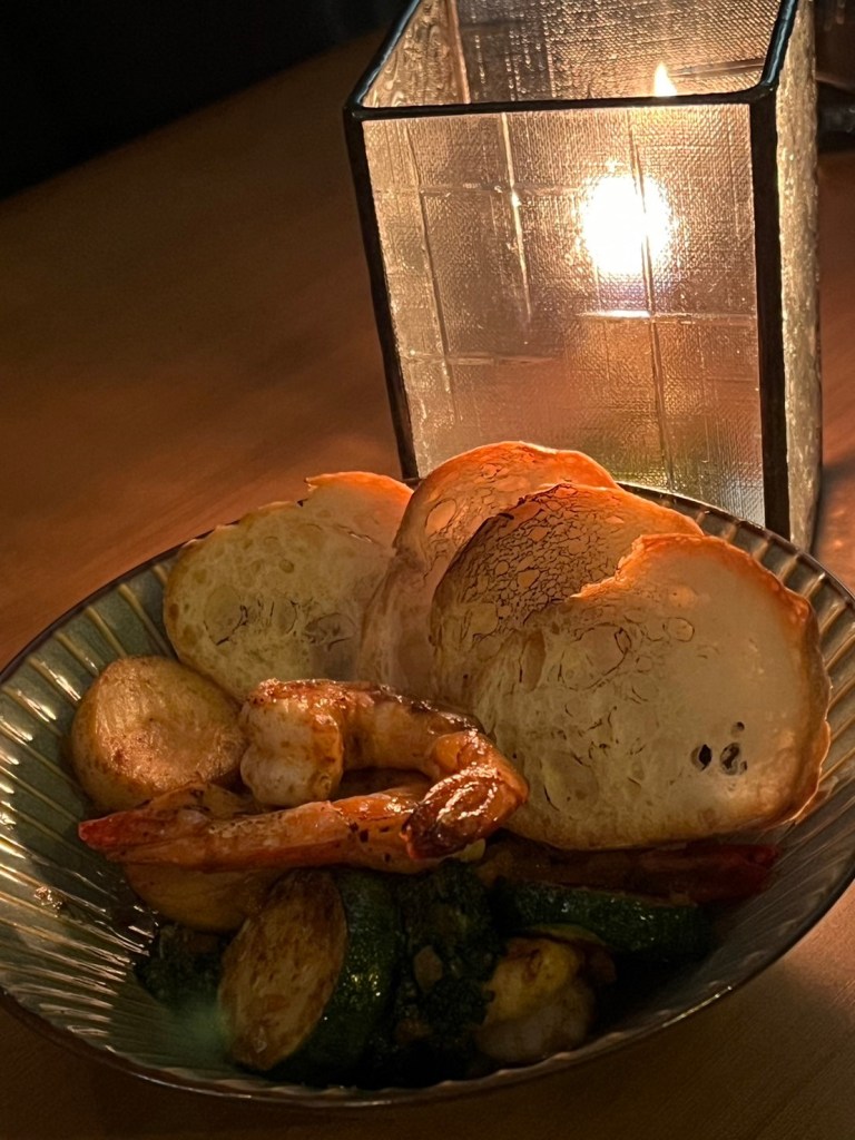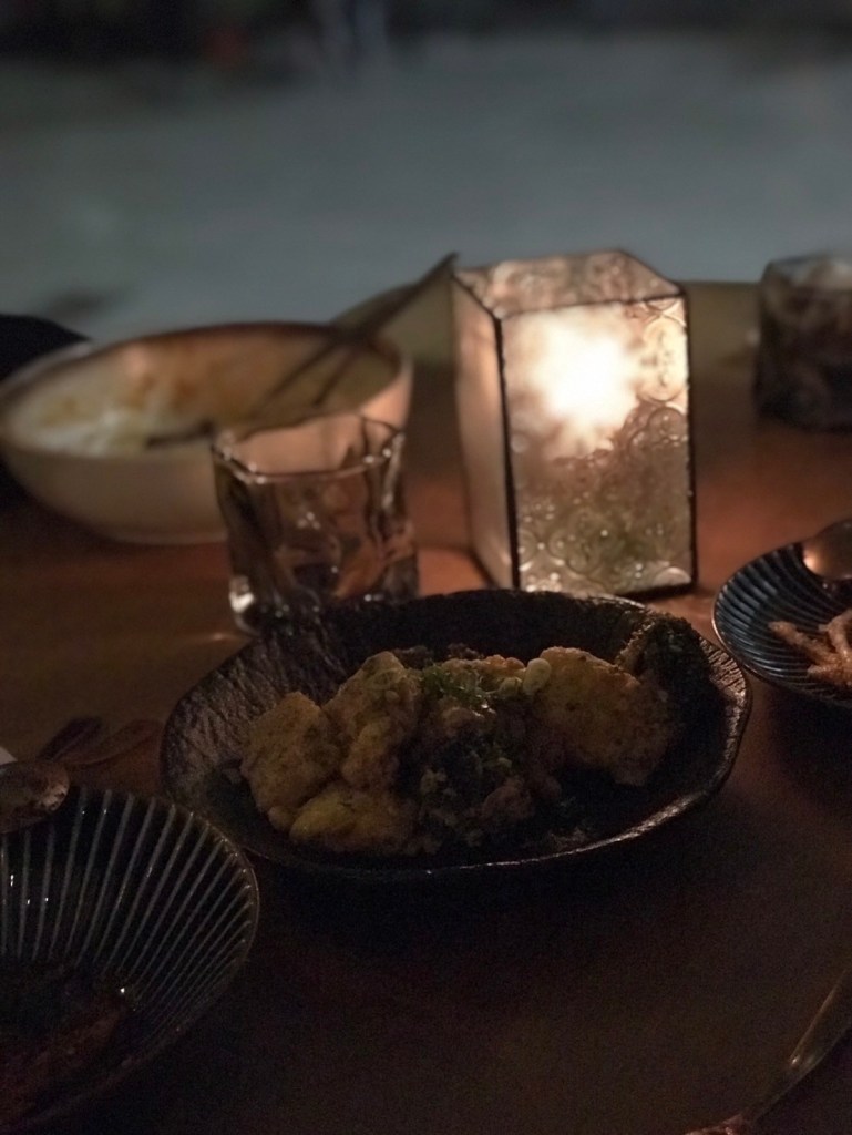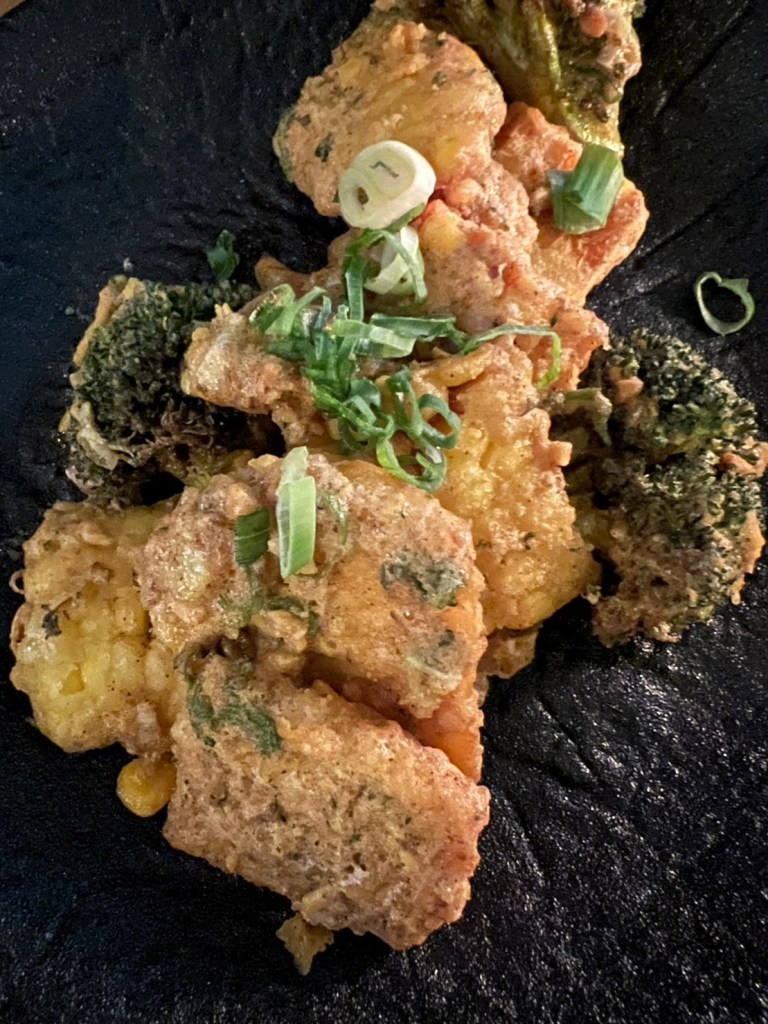 STH : 剛好因為鼻塞喉嚨痛,沒能專心品嘗。但前菜的香辣油封蒜蝦的味道不錯,味道適中,不會搶戲,剛好可以襯托蝦肉的味道。金沙玉米花菜的味道也不錯,外面鹹鹹的,裡面玉米甜甜的,味道很有層次,是個不錯的選擇。可惜松露薯條就是單純的薯條搭配松露醬料而已,沒有讓我有所驚豔。香料雞翅考得很老很脆,是一種有趣的吃法,但我還是比較喜歡吃多汁的肉。我的主菜花雕雞燉飯,分量對我而言少了一些,花雕雞的味道也不錯,肉咀嚼起來嫩嫩的。整體環境能讓人放鬆,是個下班後三五好友聚餐的好選擇。