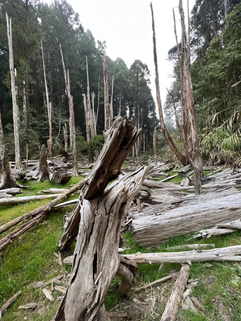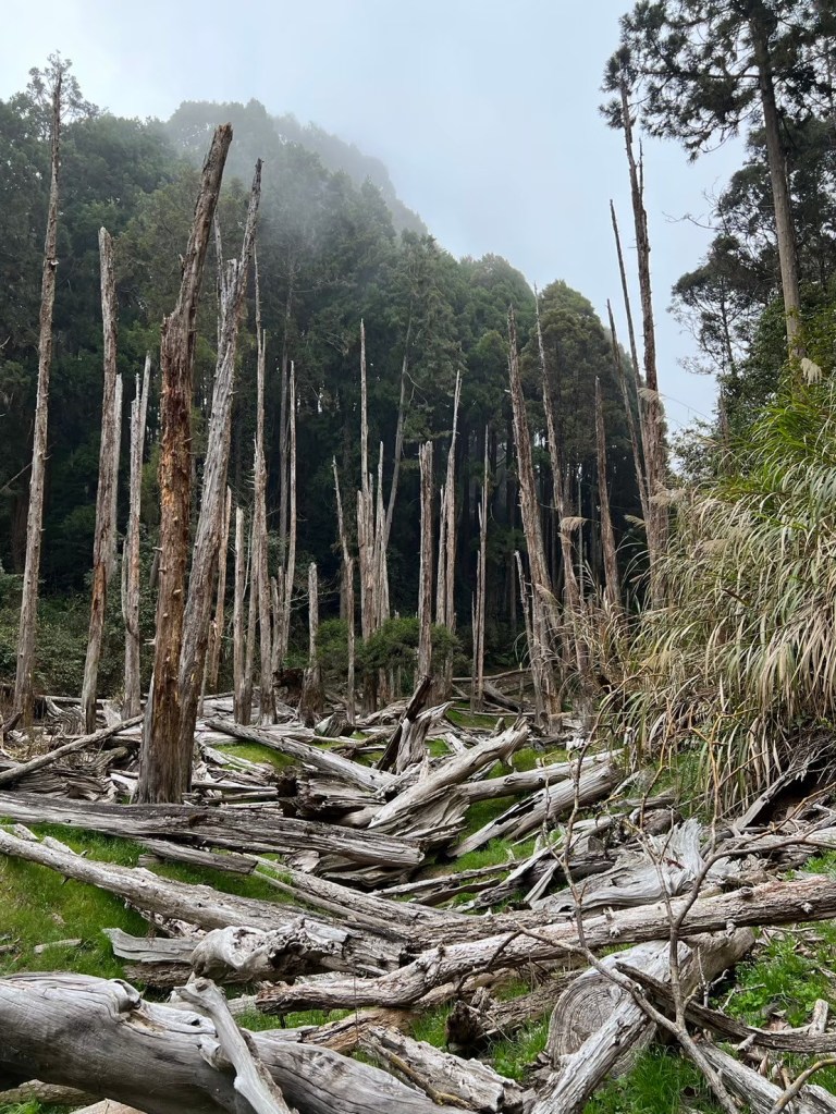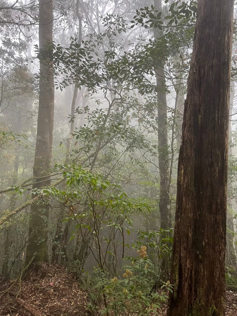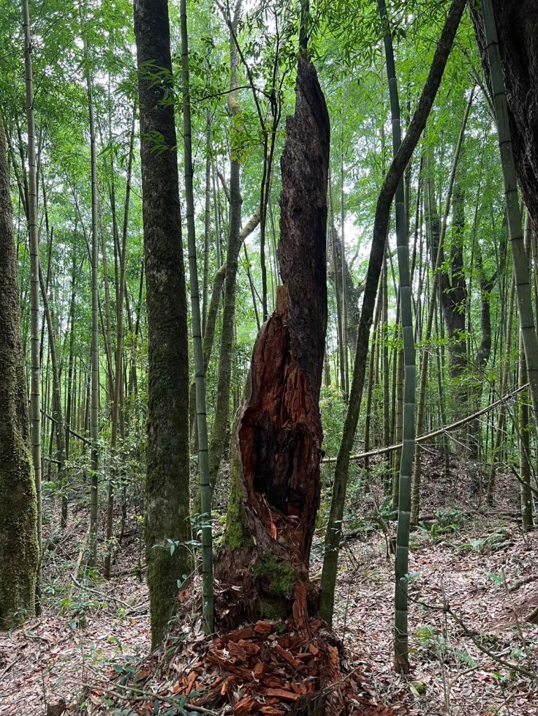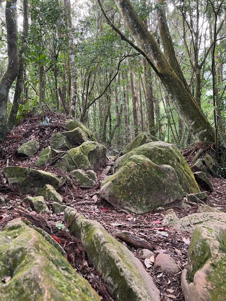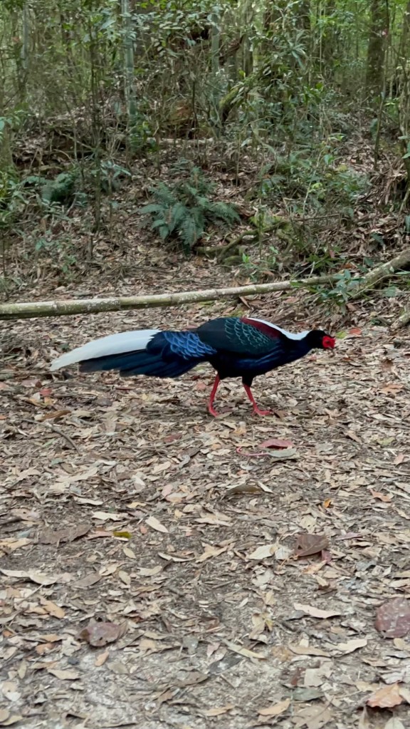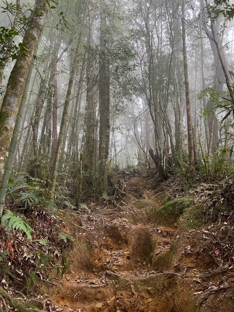 STH : 從留龍頭啟登,前段階梯與爬坡較多,尤其茶園那段比較陡,且風大,可以選擇走內側林道,但不會困難到需要四肢攀爬,幾乎一路都在樹林當中,只有少數路段會曬到太陽。一路上叉路很多,需要注意路標語布條。路途中有幾處規劃好的休息區,有桌子椅子可以休息。本趟因為天氣因素,沒有出太陽,所以有耶穌光的路段都只有霧氣繚繞。嶺頭山的基點不遠,可以順便收起來,但要注意標示牌的箭頭往右,不可往前,我就繞了一圈。在我之前有一遊覽車的人出發,但似乎大家都先前往忘憂森林,所以我一路上幾乎都是一個人,素聞此路段有藍腹鷴出沒,但我直到金柑樹山都沒遇到。午餐後回走,過了三個木頭路標後的一個休息區遇見了藍腹鷴,在19度的氣溫下,先花了10多分鐘讓其習慣我的拍攝,最後也留下了許多影片與照片。往忘憂的路線基本一路向下,有段叉路要小心,標示牌不大,走錯了就到杉林溪去了。然後一個不是很起眼的下切路口往下,直到平地後就知道忘憂森林到了。我去的時候是枯水期,所以可以走入當中,環境清幽,如果來點陽光會很適合野餐。雖然枯水期,但旅遊團依然不少,很難想像雨季後人潮會須要等多久。回程可以走產業道路繞回去,也可以右切回到電線桿三叉路,走山路經茶園回留龍頭。整體來說不算難走,可以當作久未爬山的練習,不算休息、與藍腹鷴約會,大概3個半小時不到我自己能走完。