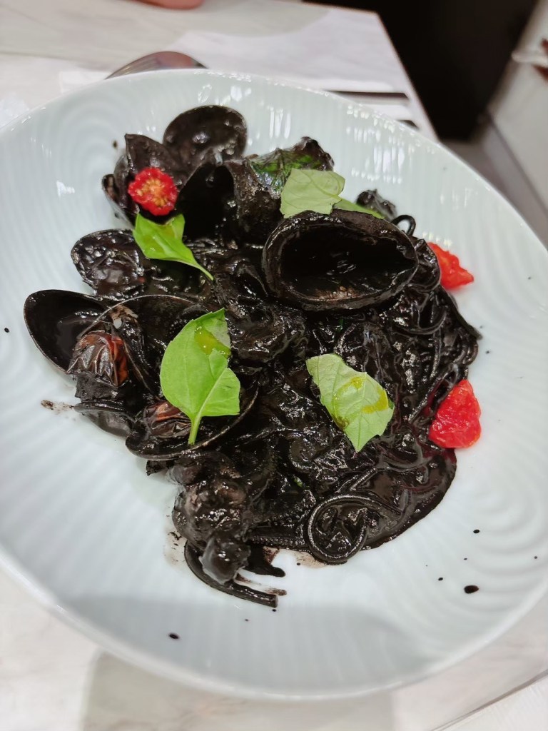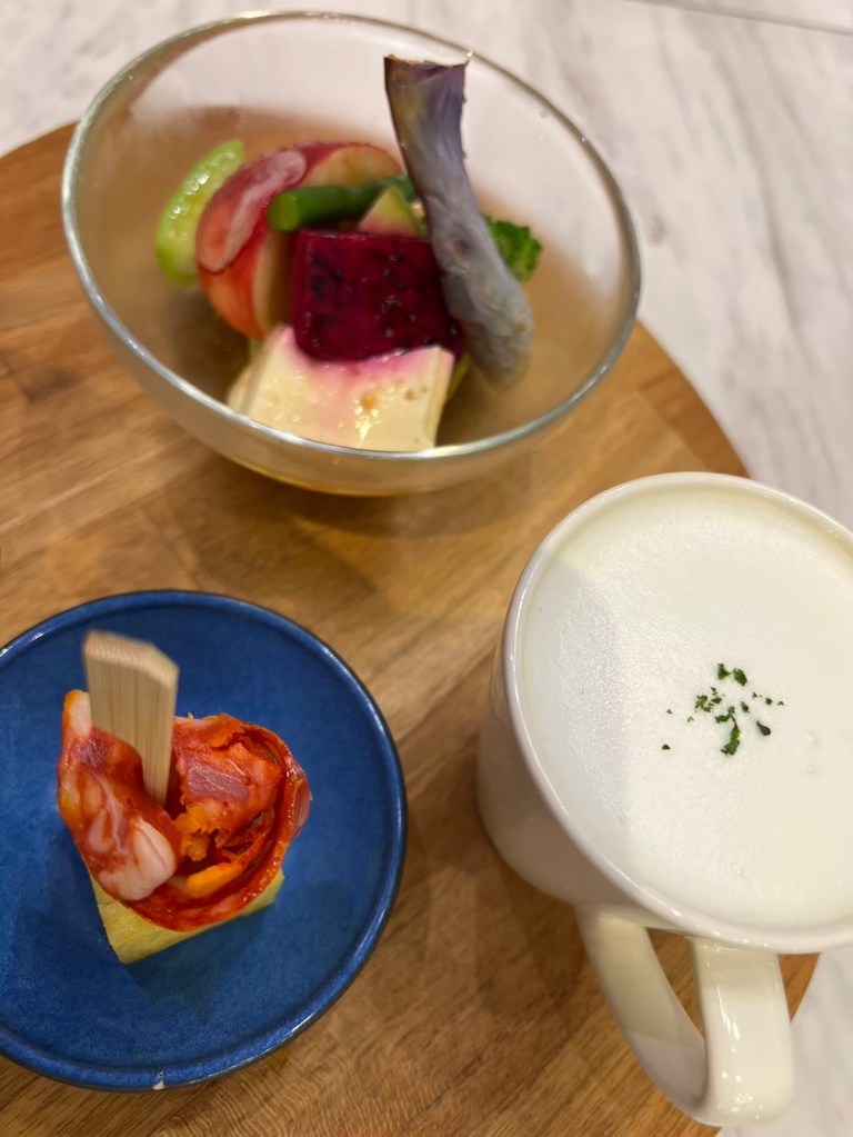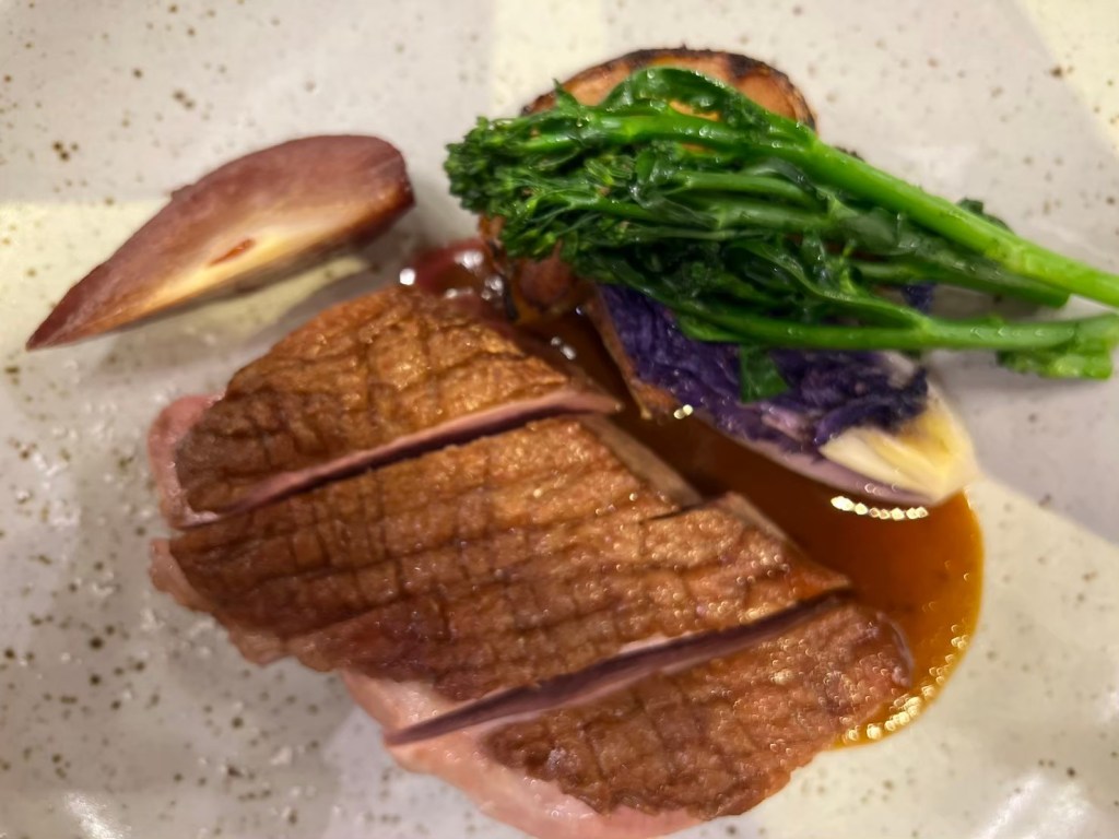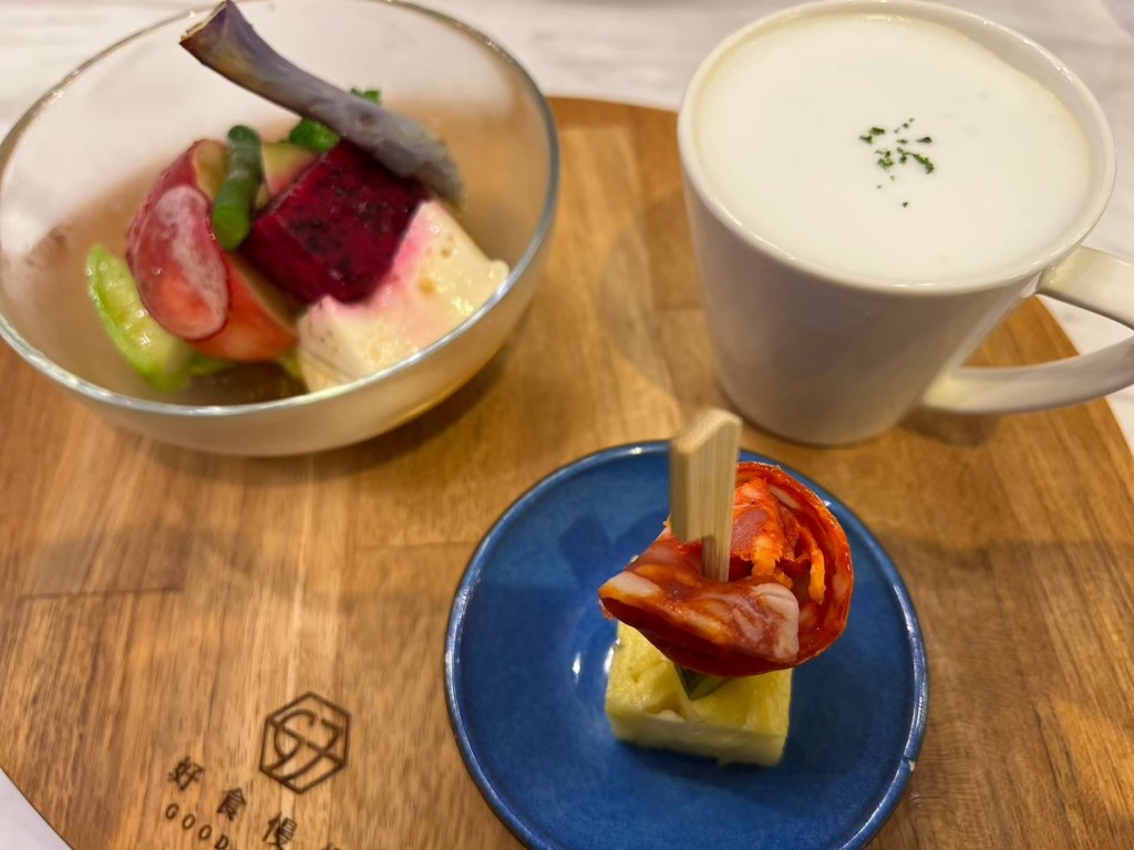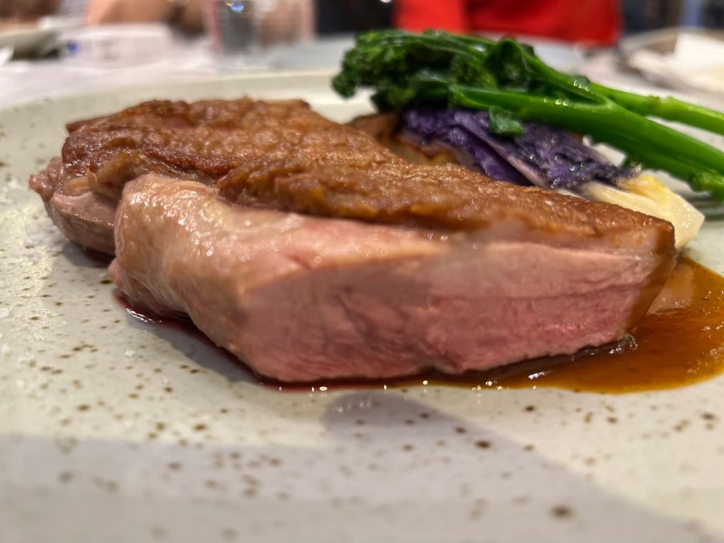 STH : 前菜的南瓜湯味道不錯,但是加上奶泡的喝法讓我覺得稍微怪怪的,味道好像有些許不搭調。鴨胸肉一開始吃的時候切得太大塊,感覺不好嚼,事後切小塊之後有吃出那種介於7-8分熟之間的軟嫩,可惜醬汁沒有巴沙諾瓦那麼令我驚豔,但是搭配煎煮軟爛的大蒜味道還不錯,有點提味的感覺。我的隨餐飲料是舒服茶,聞/喝起來很清淡,但是在嘴裡化開之後的香氣很令人感到舒服,不愧於舒服茶的名稱。