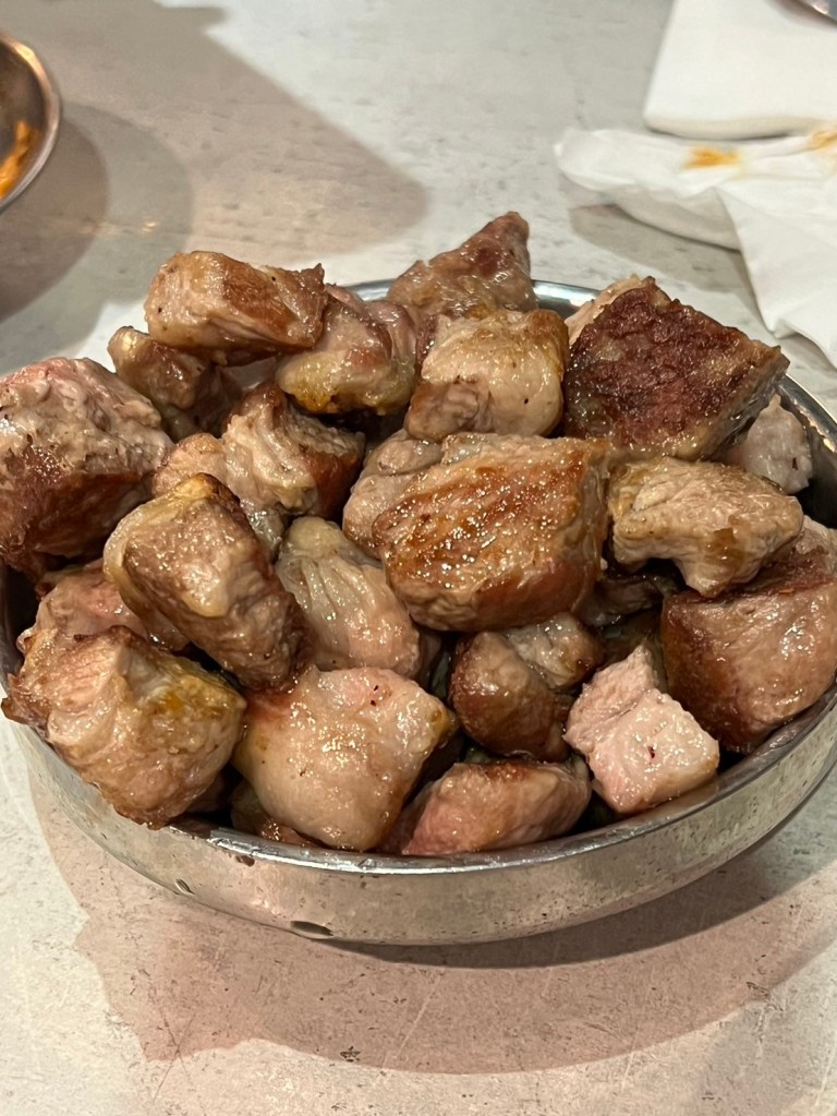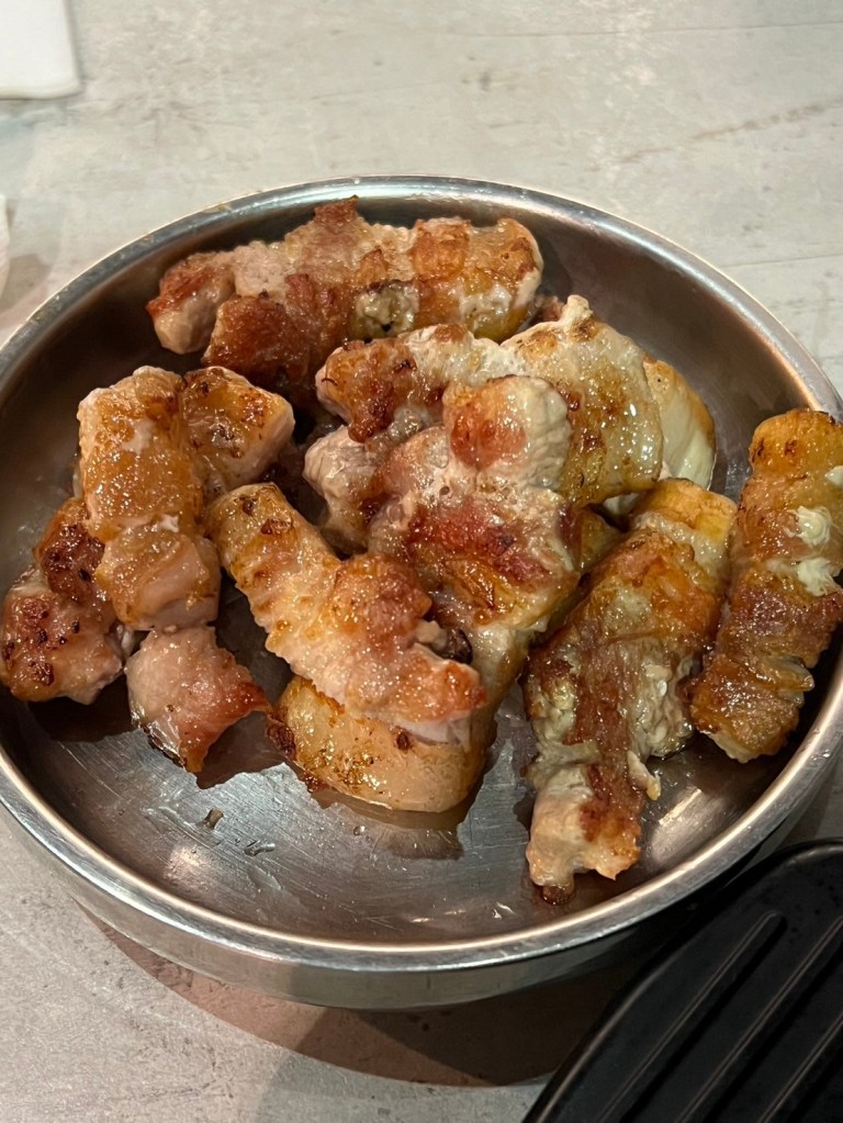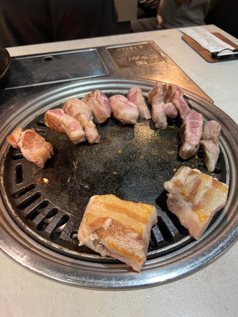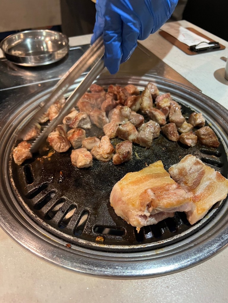 20240712 料韓男 推薦者 : S STH : 免費的小菜不多,味道與韓國吃到的有些許落差。烤肉的部分全部都有專人代烤,我們只要負責吃就好了,整體來說是個不錯的體驗,烤出來的肉多汁且不老,是個及格線以上的分數。
