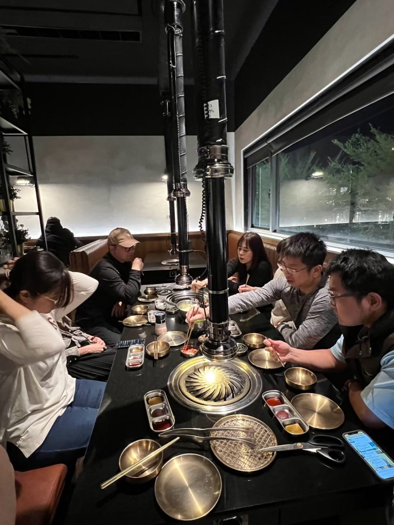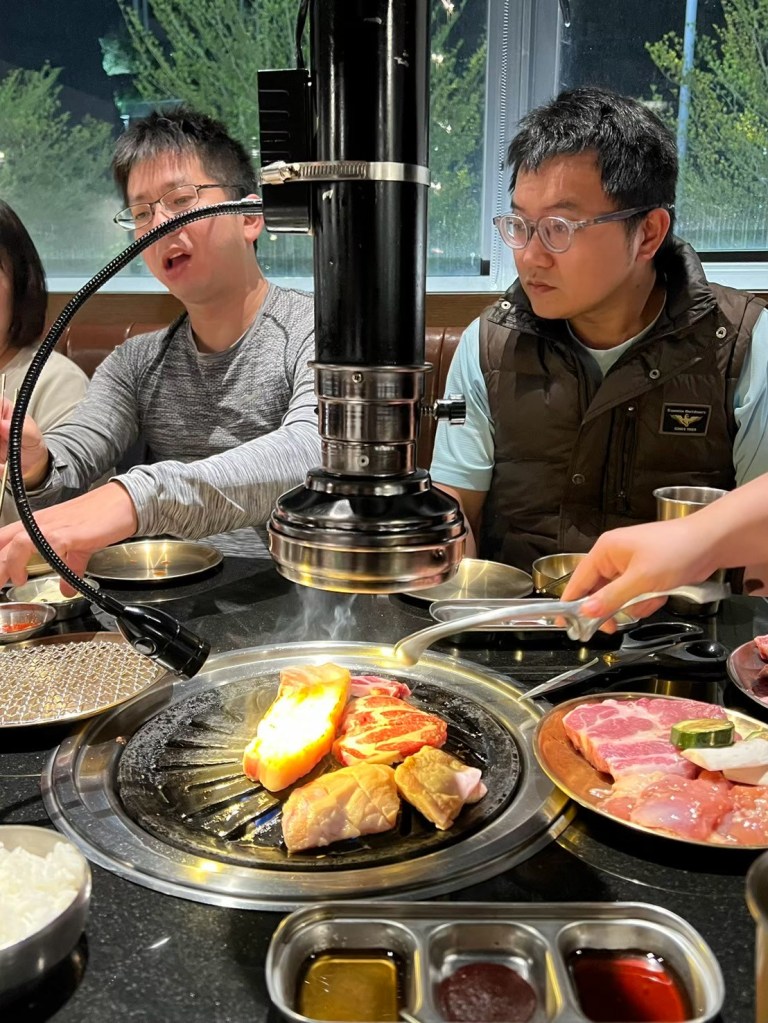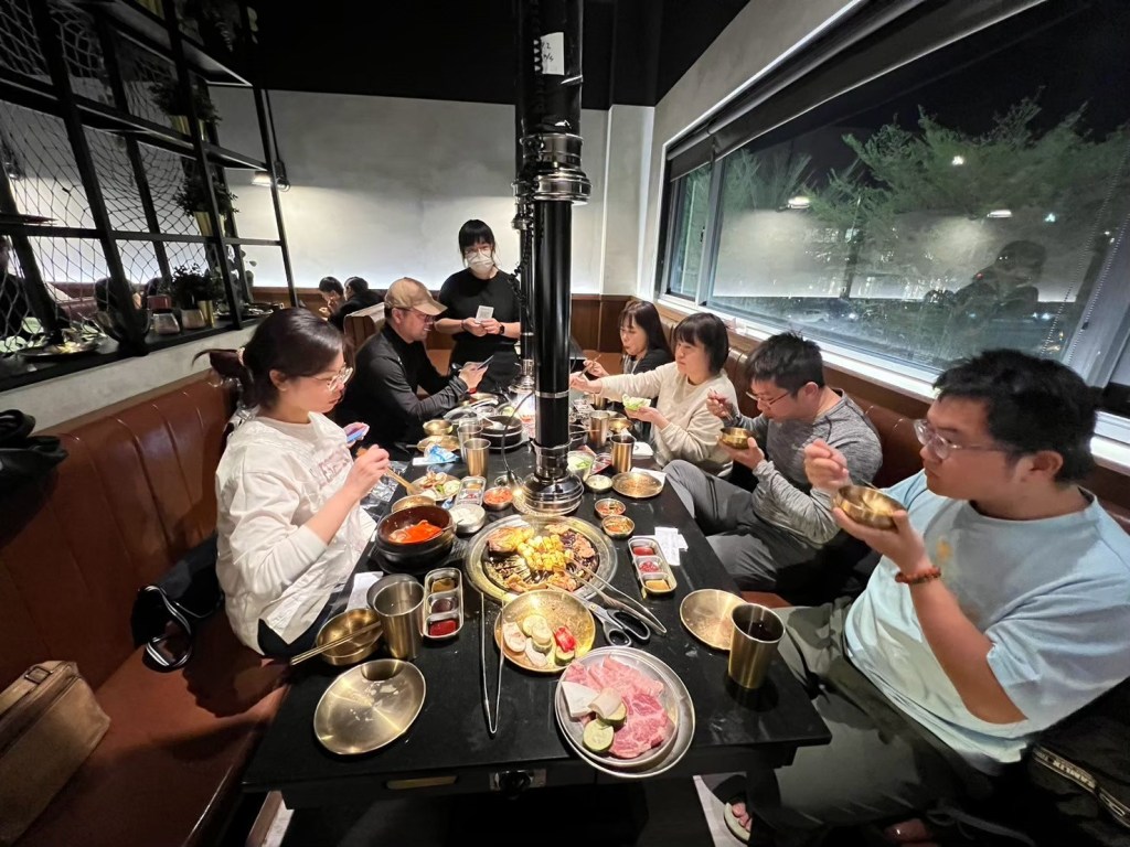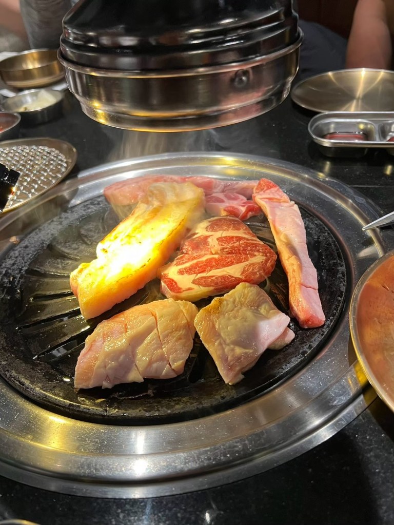 20250321 燒肉滋滋 推薦人 : 17 STH : 喜歡韭菜泡菜的味道,有比較接近當初韓國吃到的味道。烤肉的部分全部都有專人代烤,我們只要負責吃就好了,這次吃的是伊比利松阪豬,肉質考的Q彈有嚼勁,副食的鍋類湯頭喝起來不差,但味道還不到我可以記住的程度。